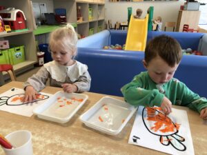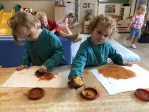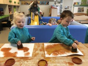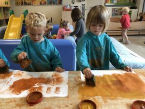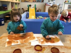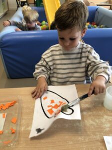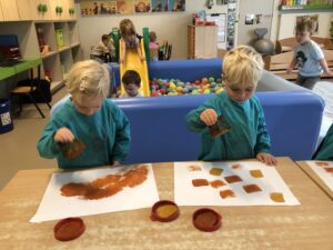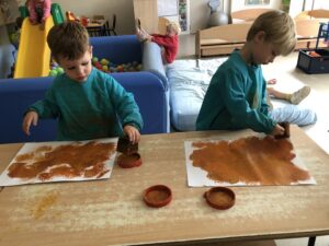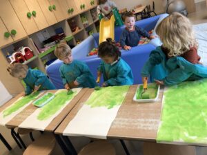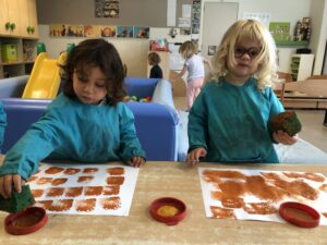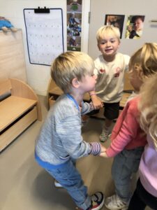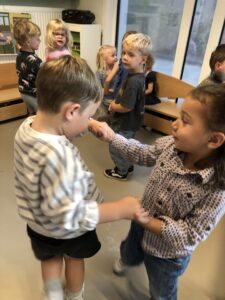 Om ons nieuw thema: “Herfstschatten in het bos” te starten mocht een wandeling in het bos niet ontbreken. We vonden eikels, bolsters, beukennootjes, bladeren, takken,… We hoorden de vogels fluiten en zagen een gaatje in de boom…Van een eekhoorntje misschien??? We voelden aan het zachte mos op de grond en verstopten ons achter dikke boomstammen. Wat hebben we er allen van genoten.