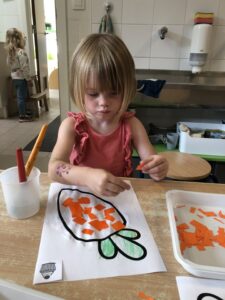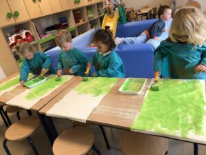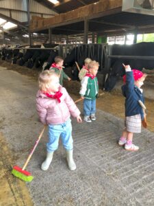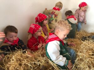 De opgedane ervaringen vanop de boerderij werden in de klas verder verwerkt met knutselactiviteiten, liedjes, spelletjes,…