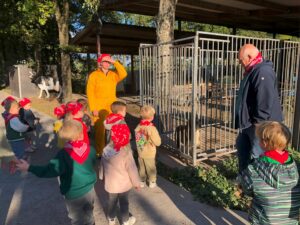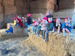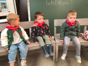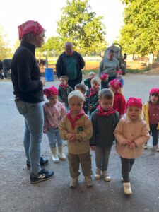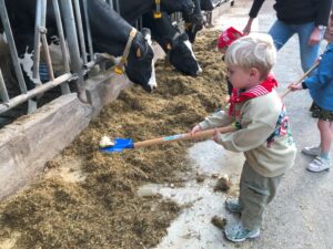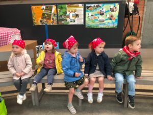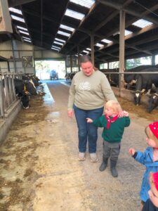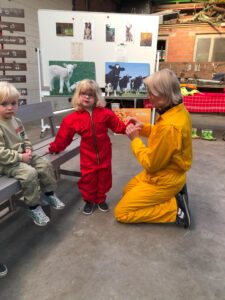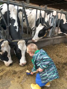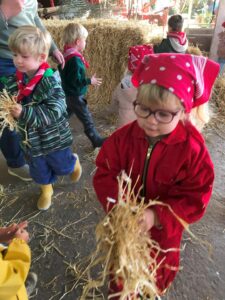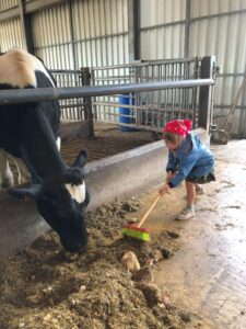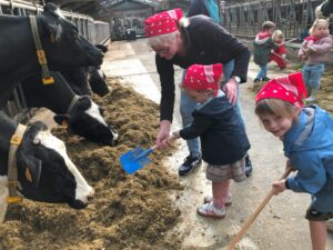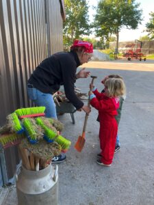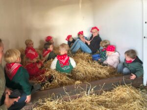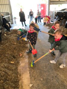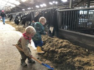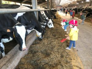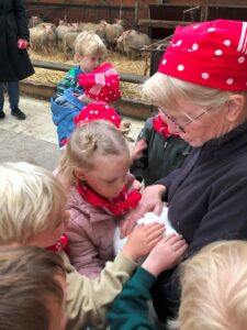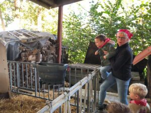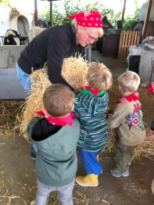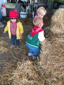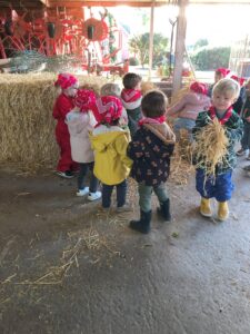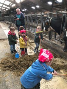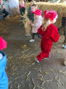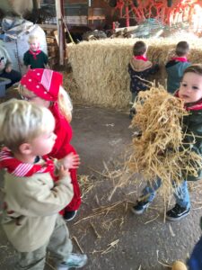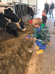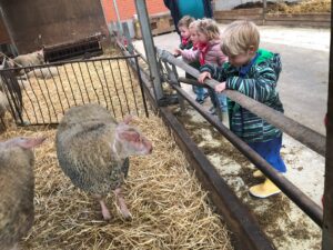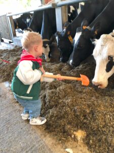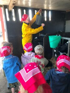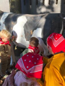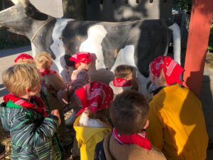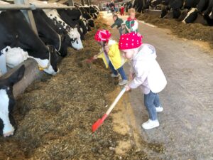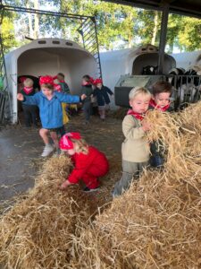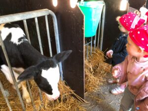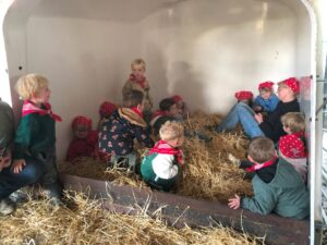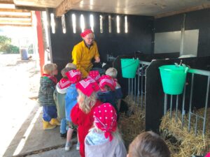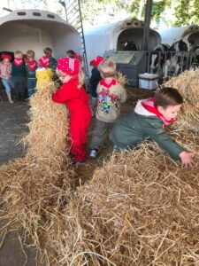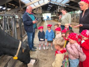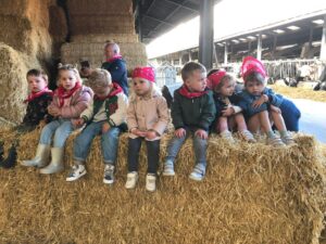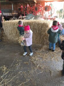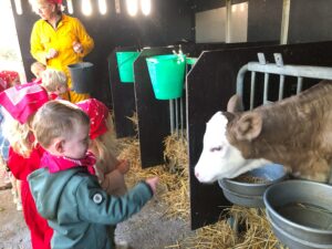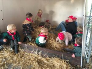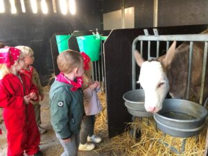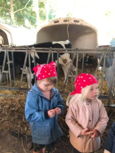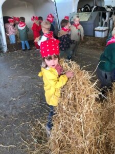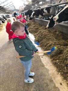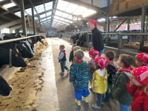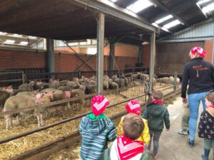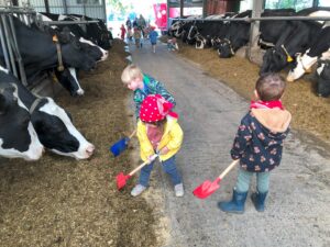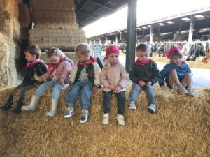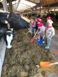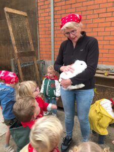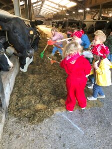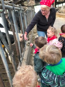 Op dinsdagvoormiddag 30 september mochten we even meedraaien op de boerderij van boerin Lut. Van het hok voor de kalfjes klaarmaken, koeien voederen, schapen en konijntjes aaien, in de tractor van boer Gert zitten, dierengeluiden nabootsen, proeven van de melk, tot de kippen en de haan zoeken op het erf. We deden superveel ervaringen op dankzij boerin Lut. Dus van alle kleuters een welgemeende dankjewel voor boerin Lut en (groot)ouders die voor vervoer zorgden.
