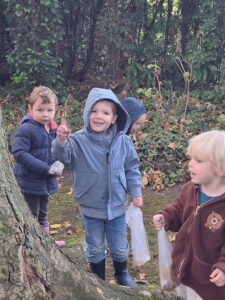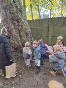 Vandaag gingen we naar het bos naar aanleiding van ons thema. We vonden veel eikels en blaadjes. We zochten bolsters en kastanjes. We leerden over het mos op de bomen en maakten veel plezier!