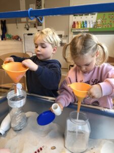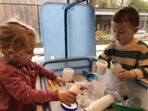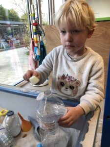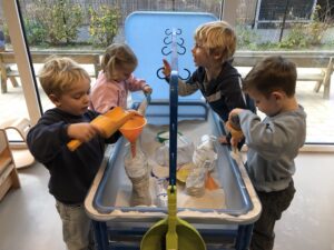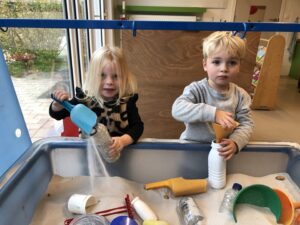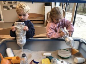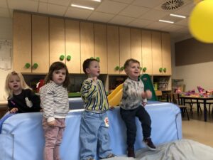 We leefden 2 weken toe naar de komst en verjaardag van de Sint. Vooral de stoomboot van de Sint stond centraal tijdens dit thema. We maakten van ons ballenbad een stoomboot, we knutselden, bouwden met blokken een stoomboot, bootsten de golven van de zee na met de...