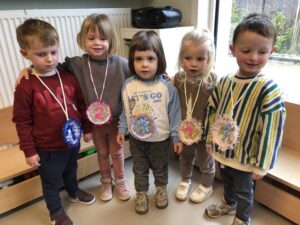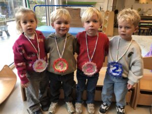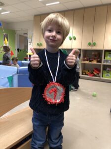 Na 2 weken intensief met sporten bezig te zijn hebben alle kleuters een welverdiende medaille ontvangen.