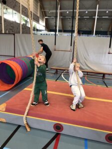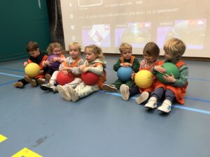Alle kleuters zagen er enorm naar uit om te gaan sporten in de sporthal Meos. Met sportkledij en tussendoortje vertrokken we enthousiast richting Maldegem met bereidwillige (groot)ouders die voor het vervoer zorgden, waarvoor dank allemaal! Veel uitleg is er niet nodig want de beelden spreken voor zich en of iedereen genoten heeft….