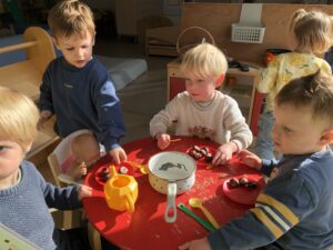 We leefden 2 weken toe naar de komst en verjaardag van de Sint. Vooral de stoomboot van de Sint stond centraal tijdens dit thema. We maakten van ons ballenbad een stoomboot, we knutselden, bouwden met blokken een stoomboot, bootsten de golven van de zee na met de...