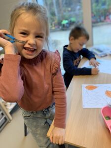 De herfst is in het land maar ook in onze klas. De kinderen maken kennis met de verschillende seizoenen, startende met de herfst. We leren verschillende bomen kennen met hun bladeren en vruchten. We leren over de verschillende kleuren.