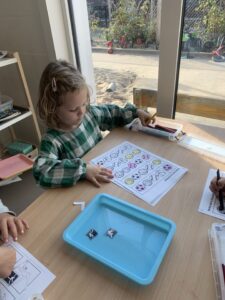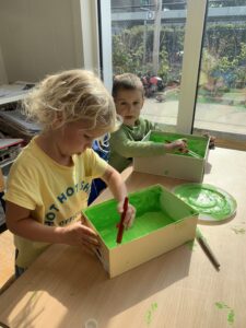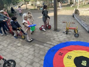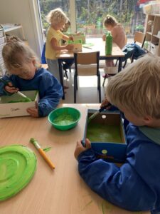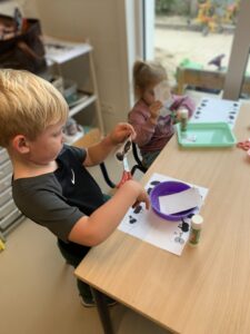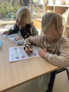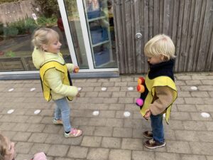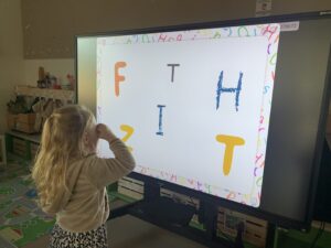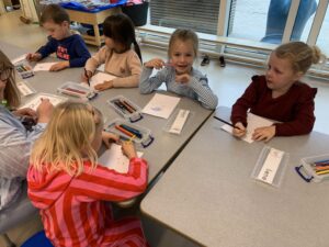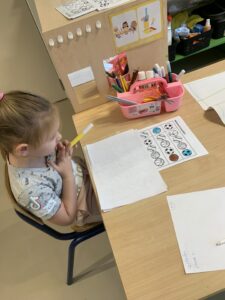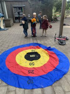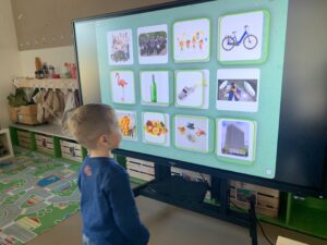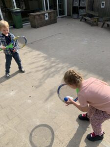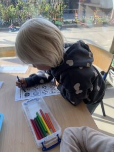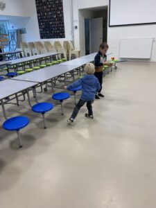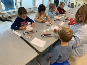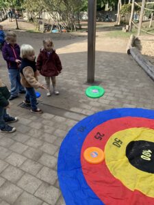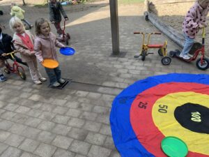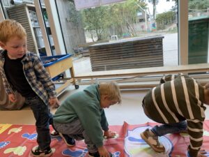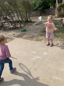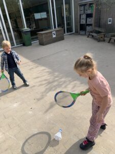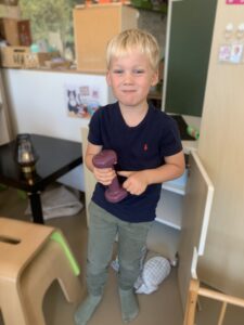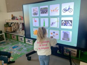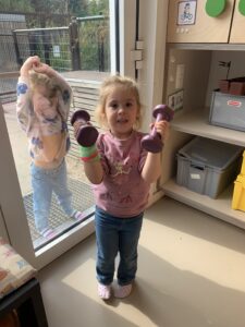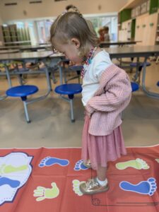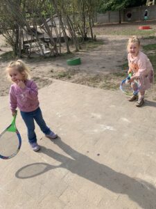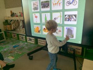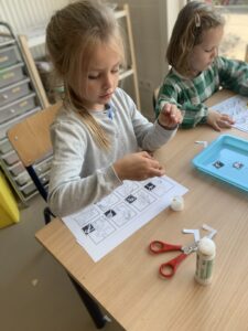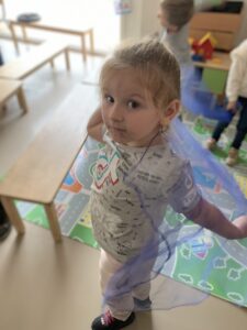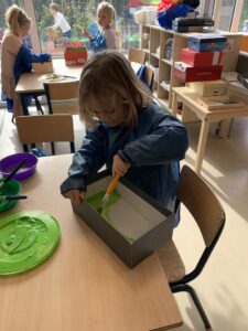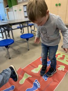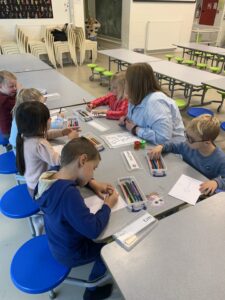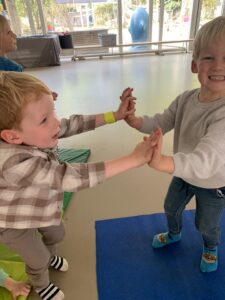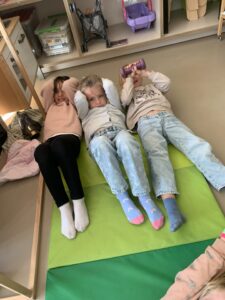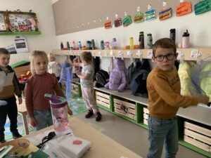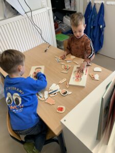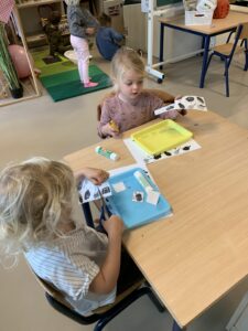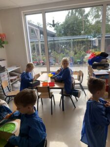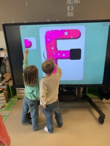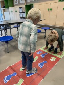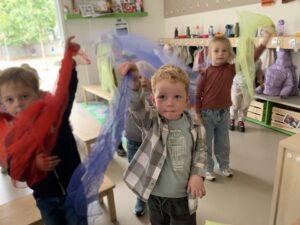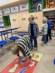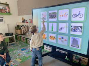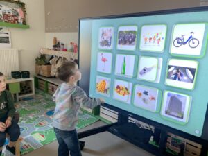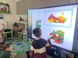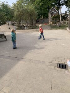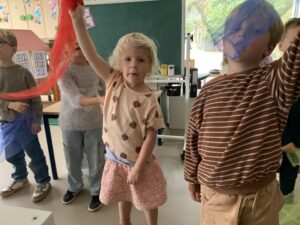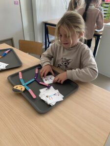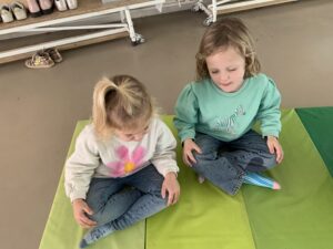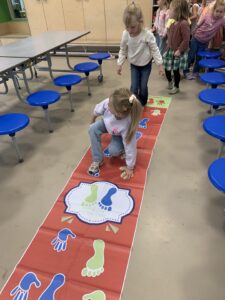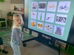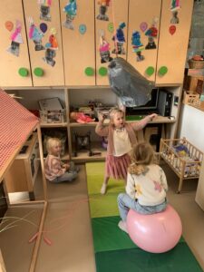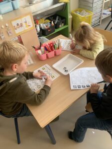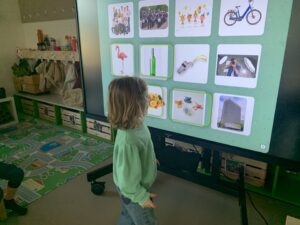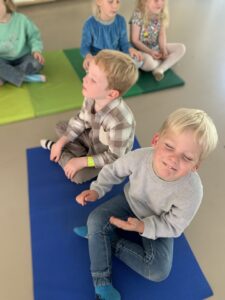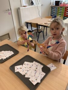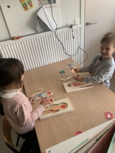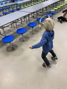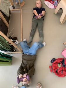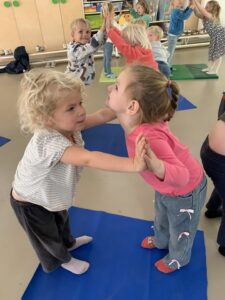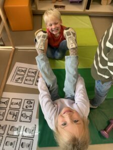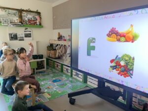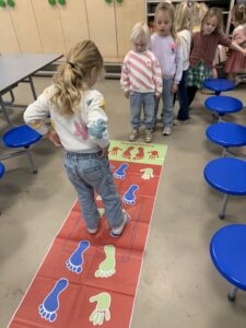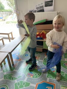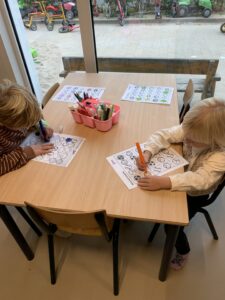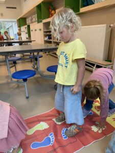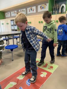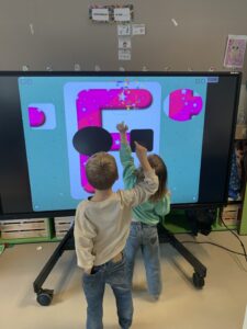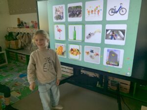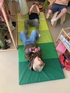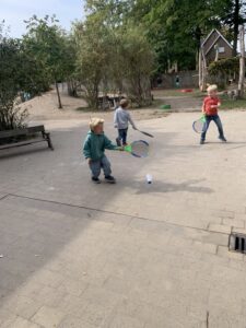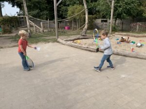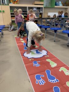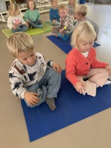 We maakten van de klas een sporthal en leerden verschillende bewegingen, dansjes, liedjes enz. We leerden verschillende sporten kennen en nieuwe begrippen en woordenschat.