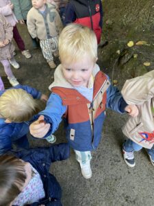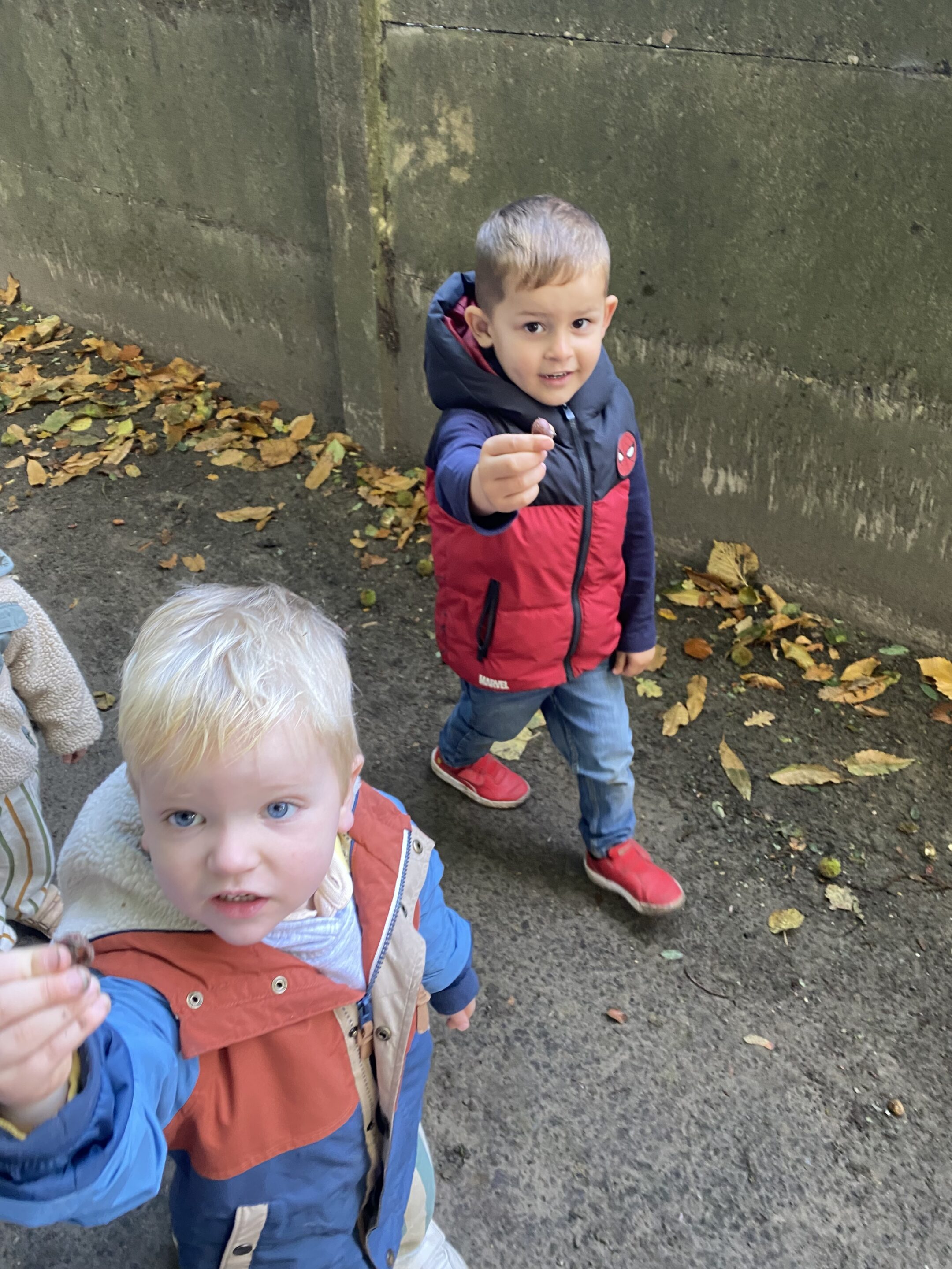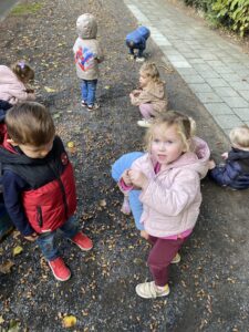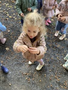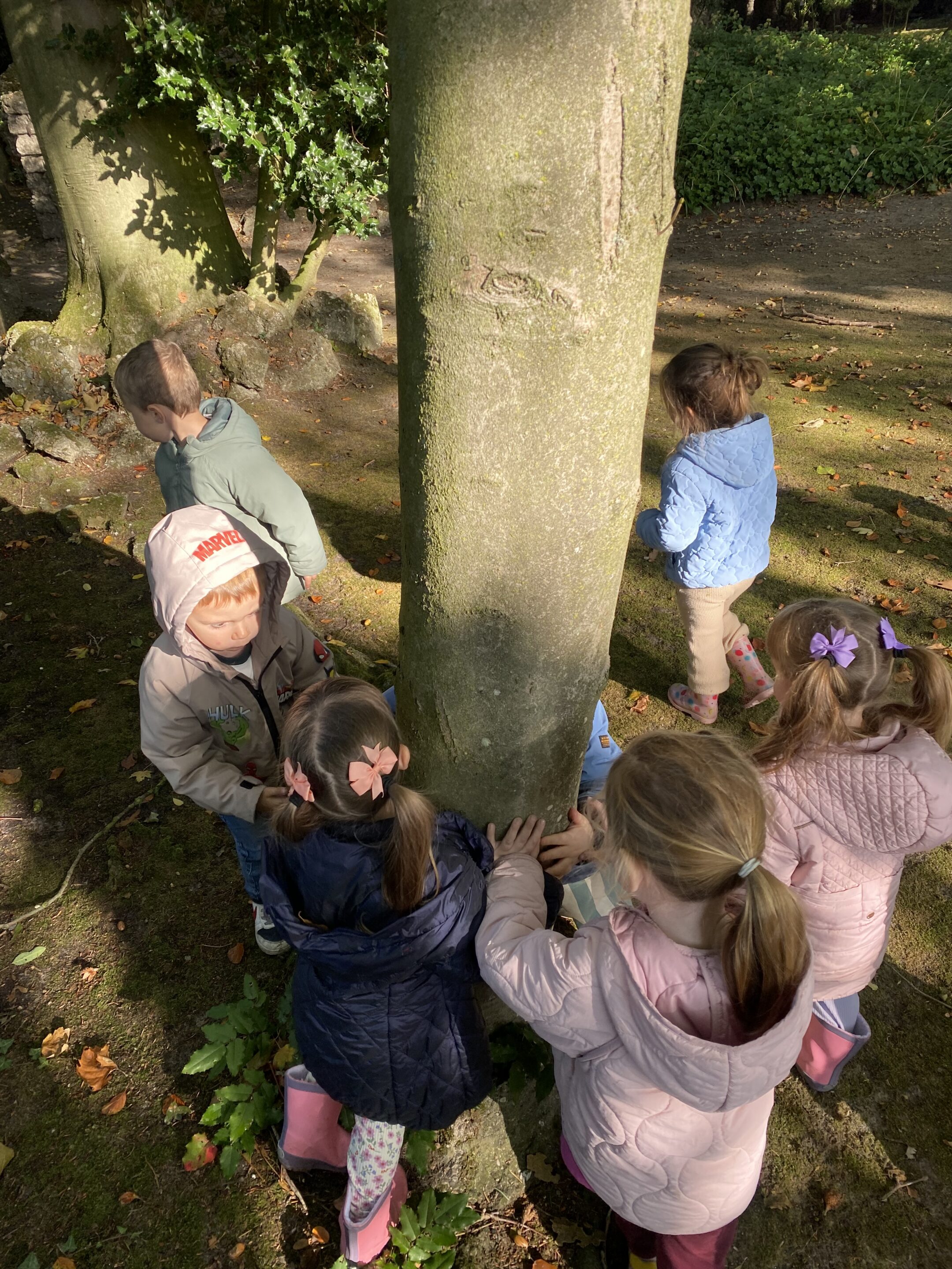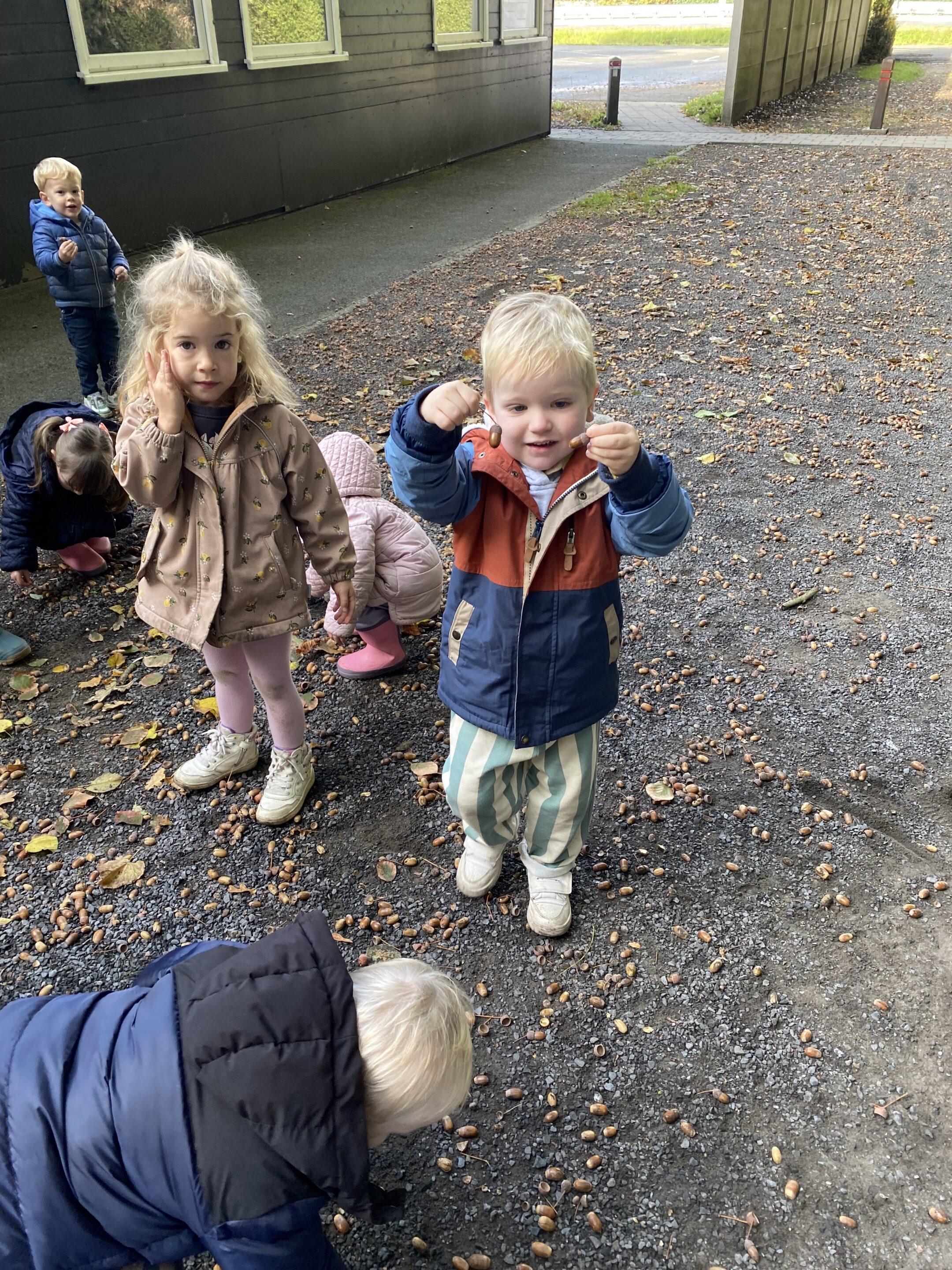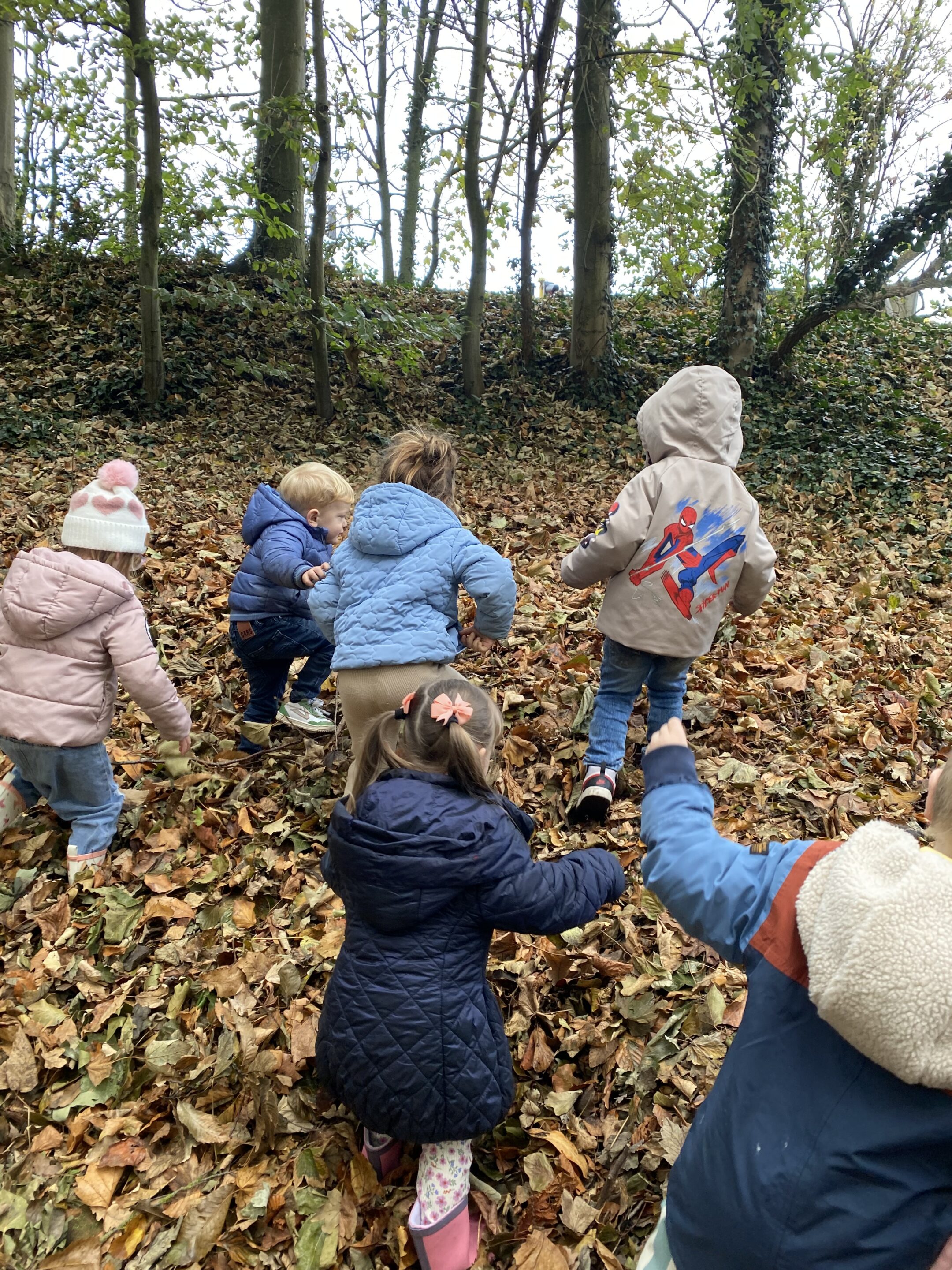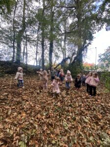 Op donderdagvoormiddag gingen we als start van ons thema: ‘herfstschatten in het bos’ op pad voor een boswandeling. We verzamelden heel wat herfstvruchten zoals kastanjes, eikels, bolsters, beukennapjes, … We sprongen in de blaadjes en gooiden ze in de lucht. We knuffelden de bomen en vergeleken de stammen met elkaar. Wat een mooie voormiddag!