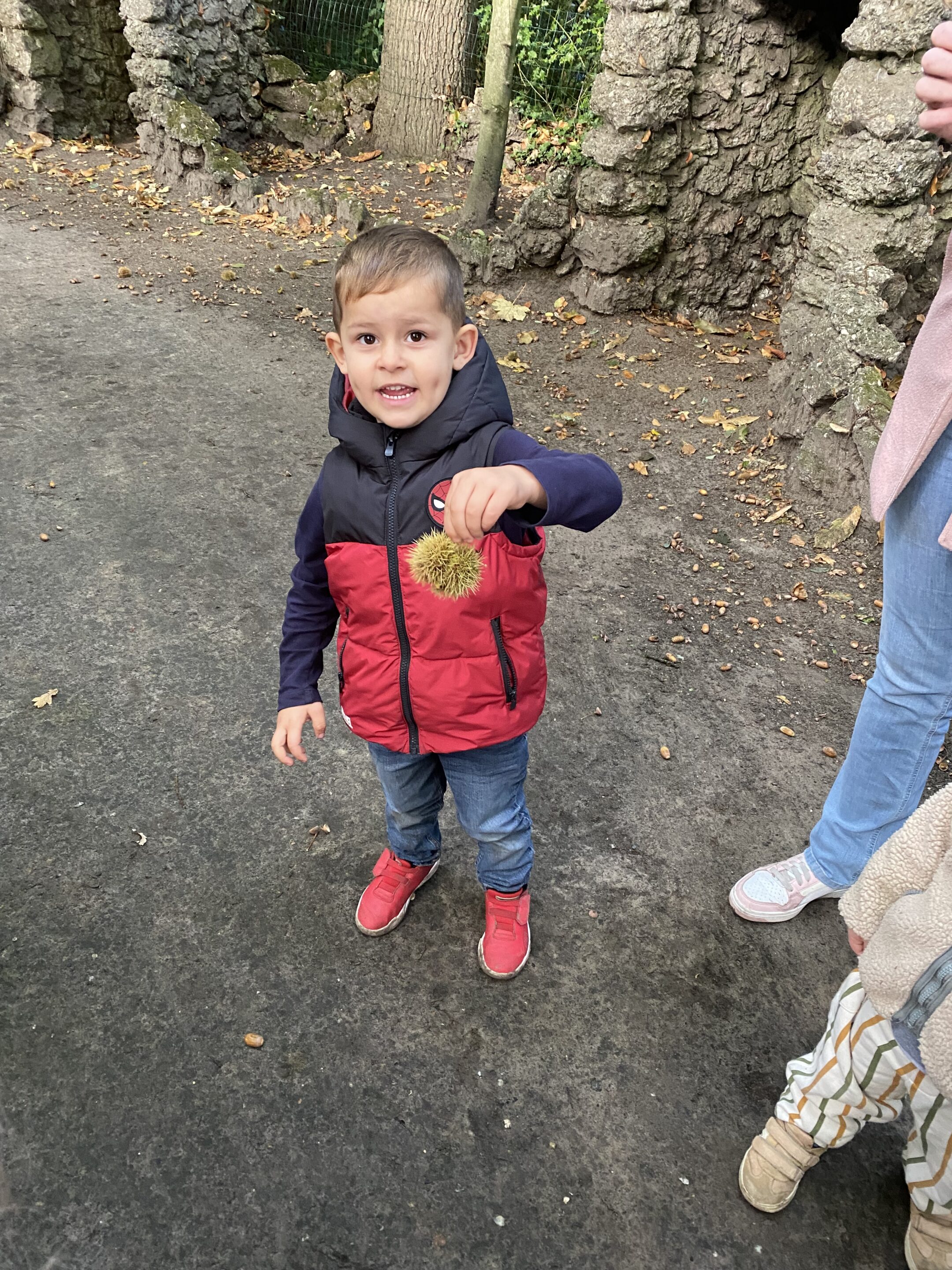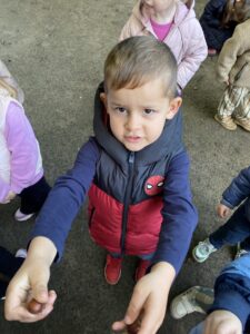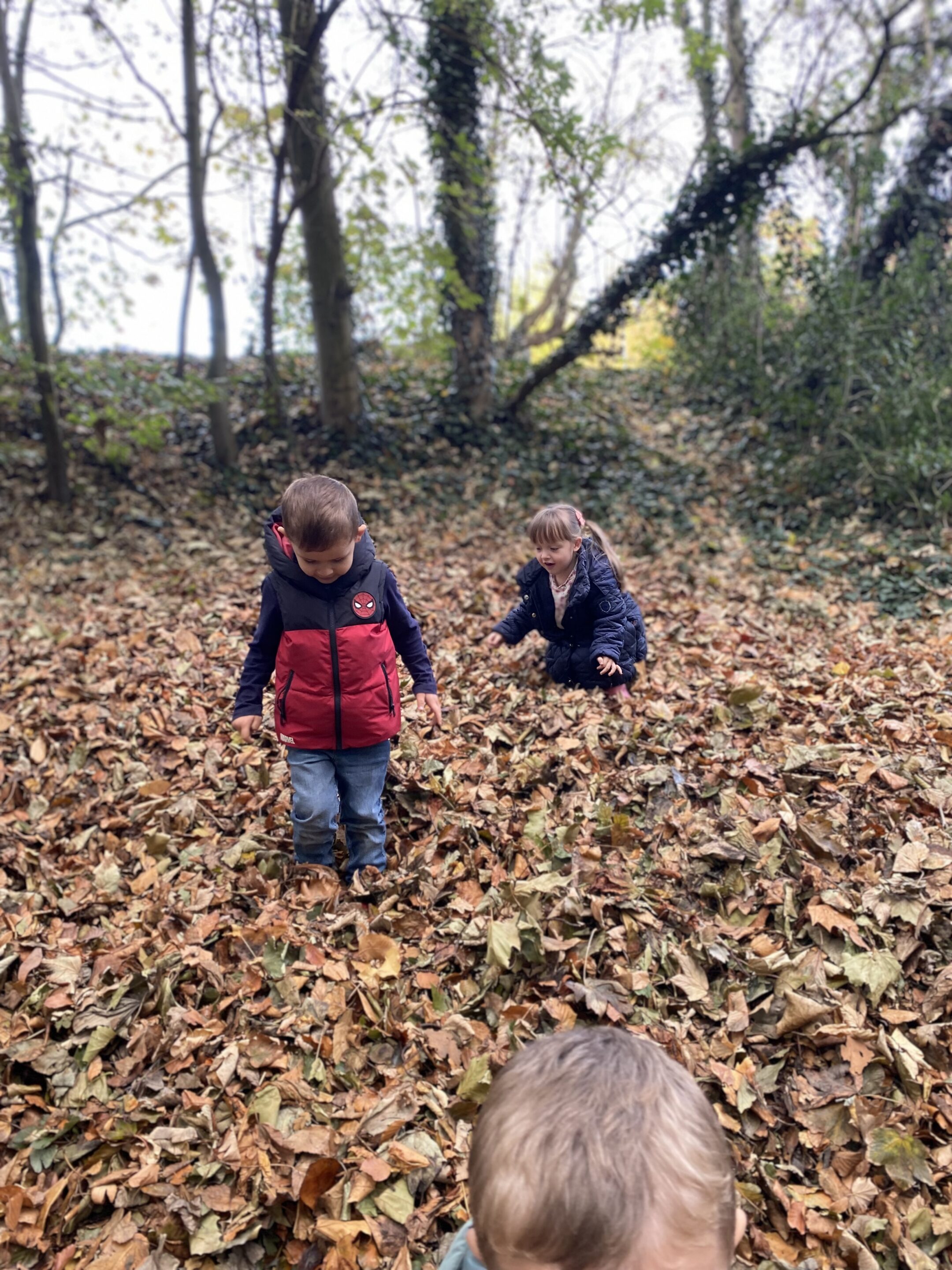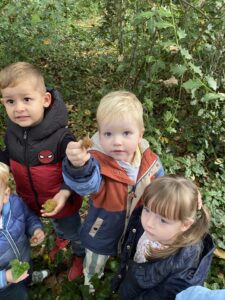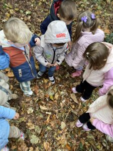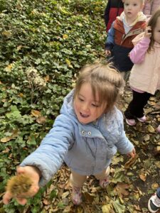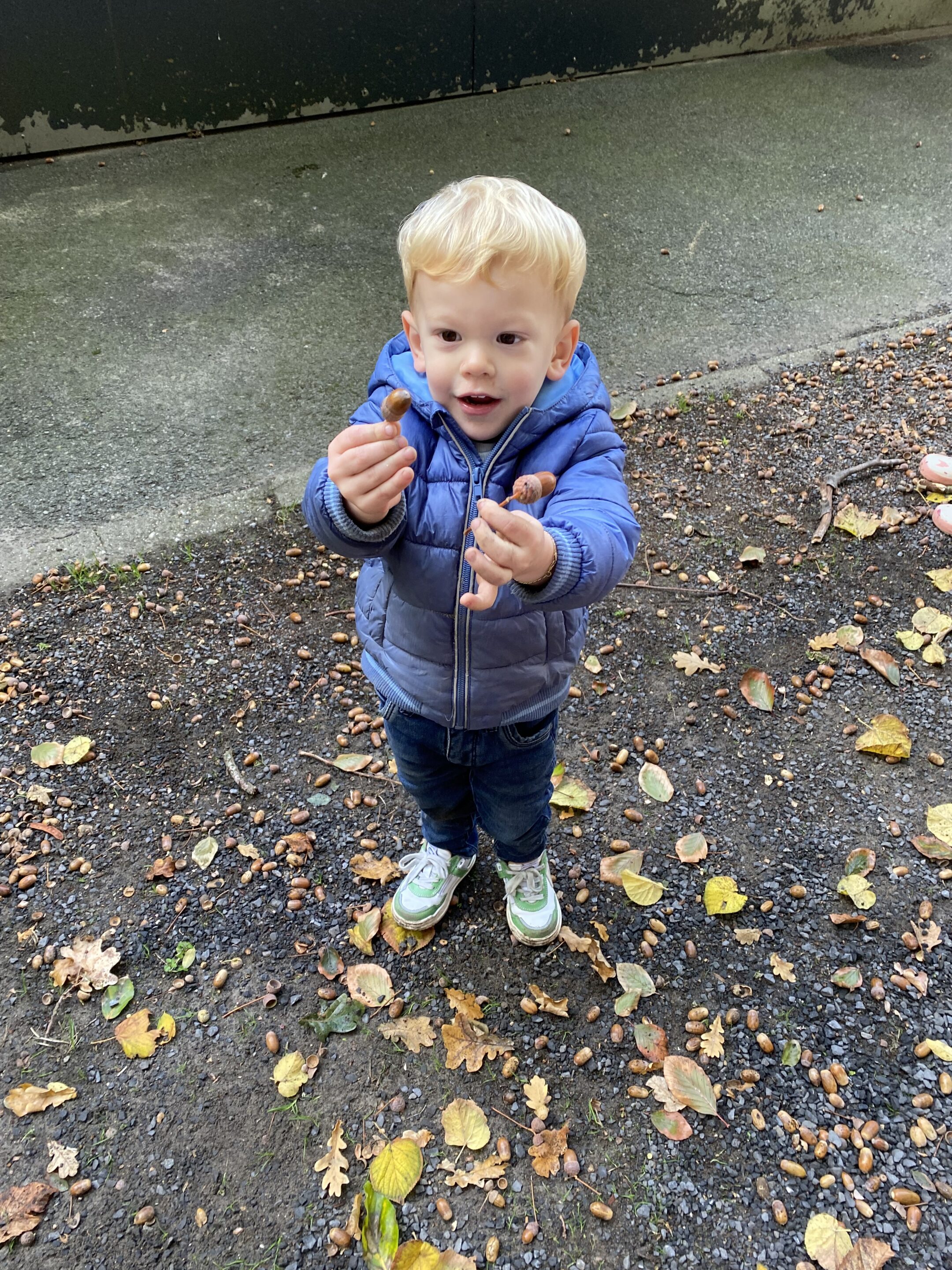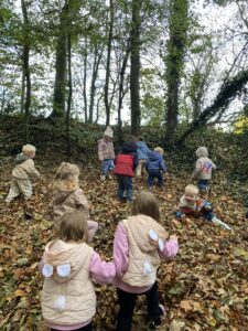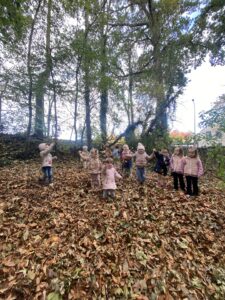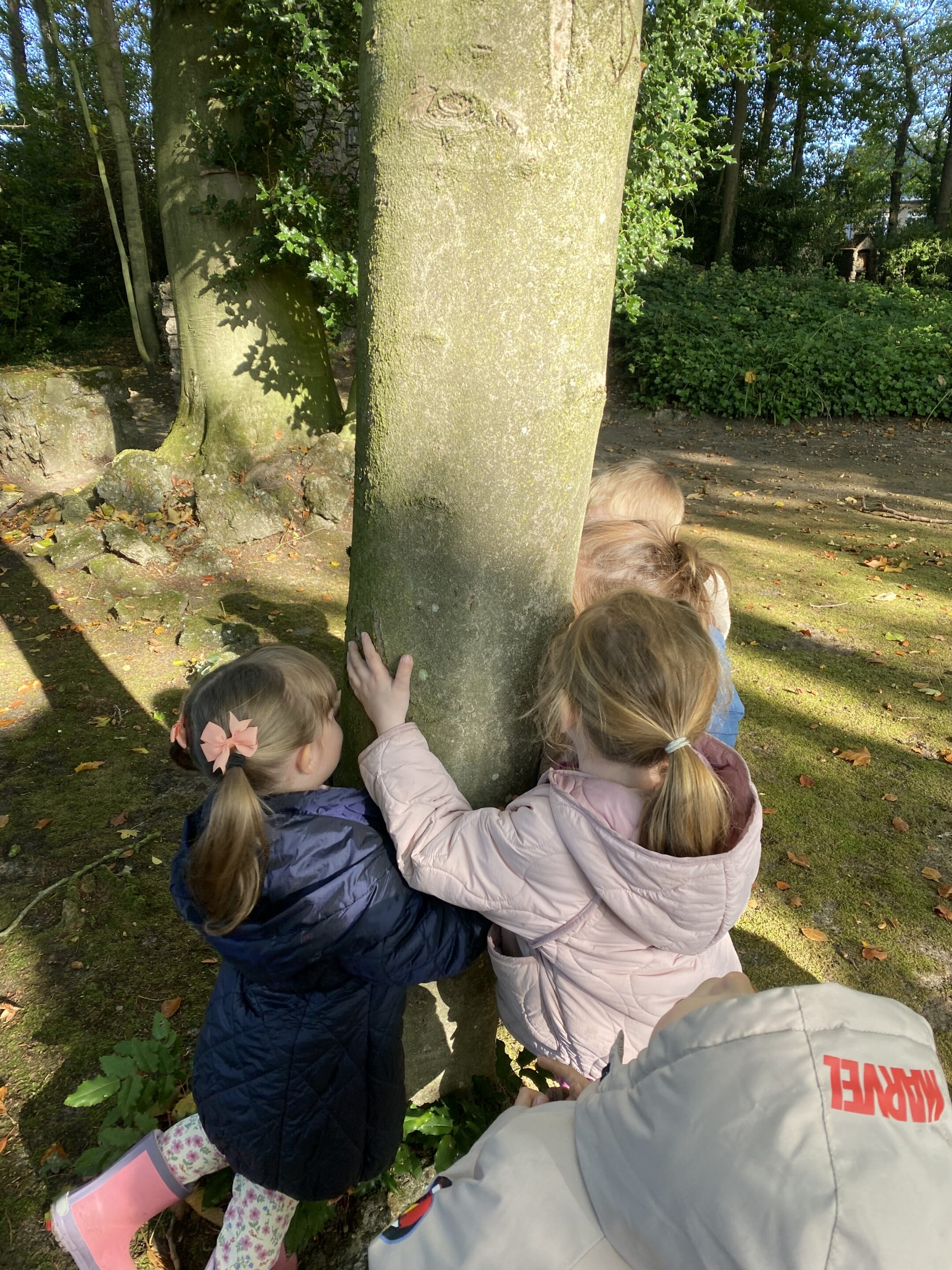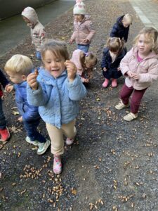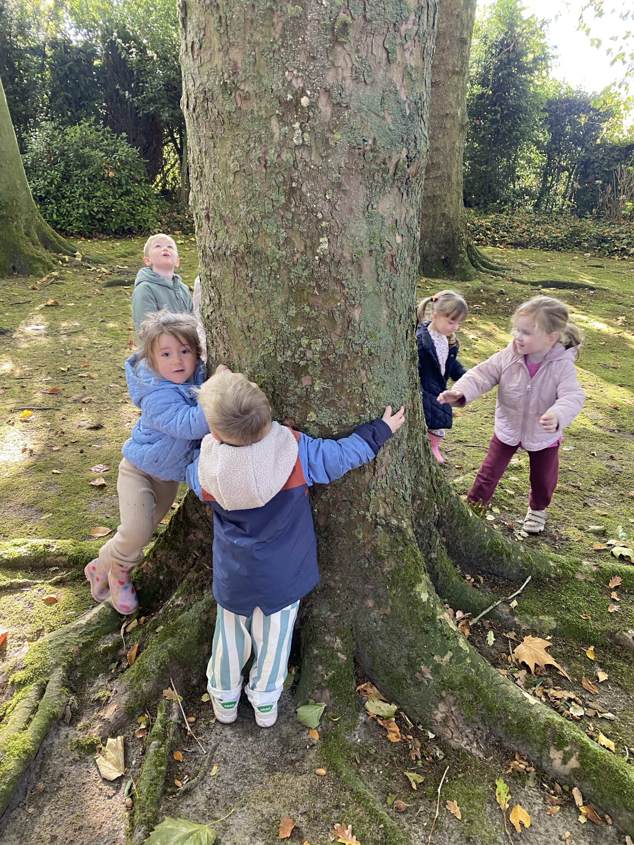 Op donderdagvoormiddag gingen we als start van ons thema: ‘herfstschatten in het bos’ op pad voor een boswandeling. We verzamelden heel wat herfstvruchten zoals kastanjes, eikels, bolsters, beukennapjes, … We sprongen in de blaadjes en gooiden ze in de lucht. We knuffelden de bomen en vergeleken de stammen met elkaar. Wat een mooie voormiddag!