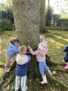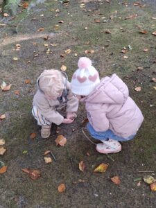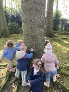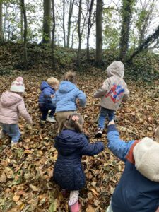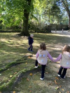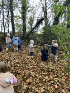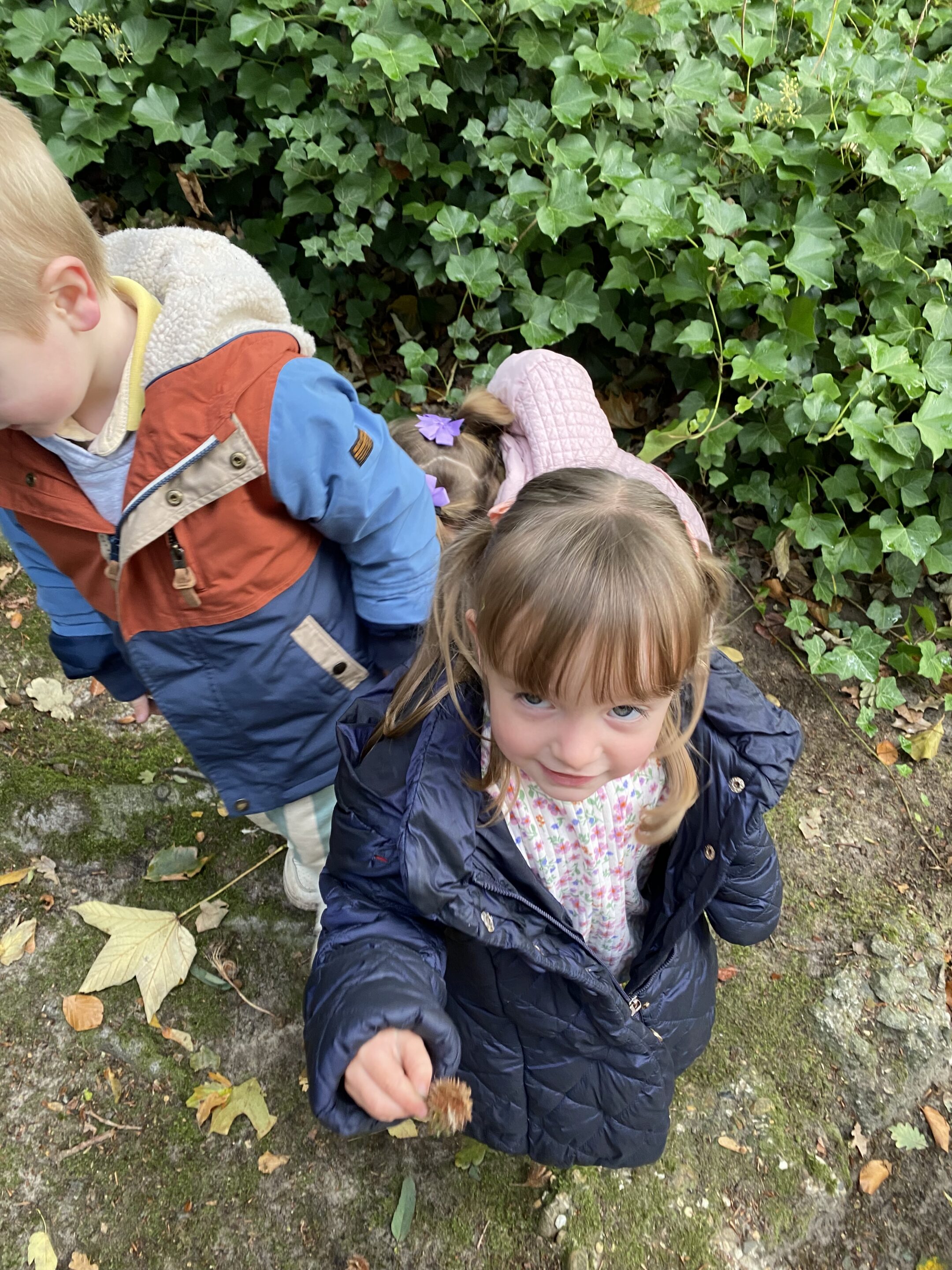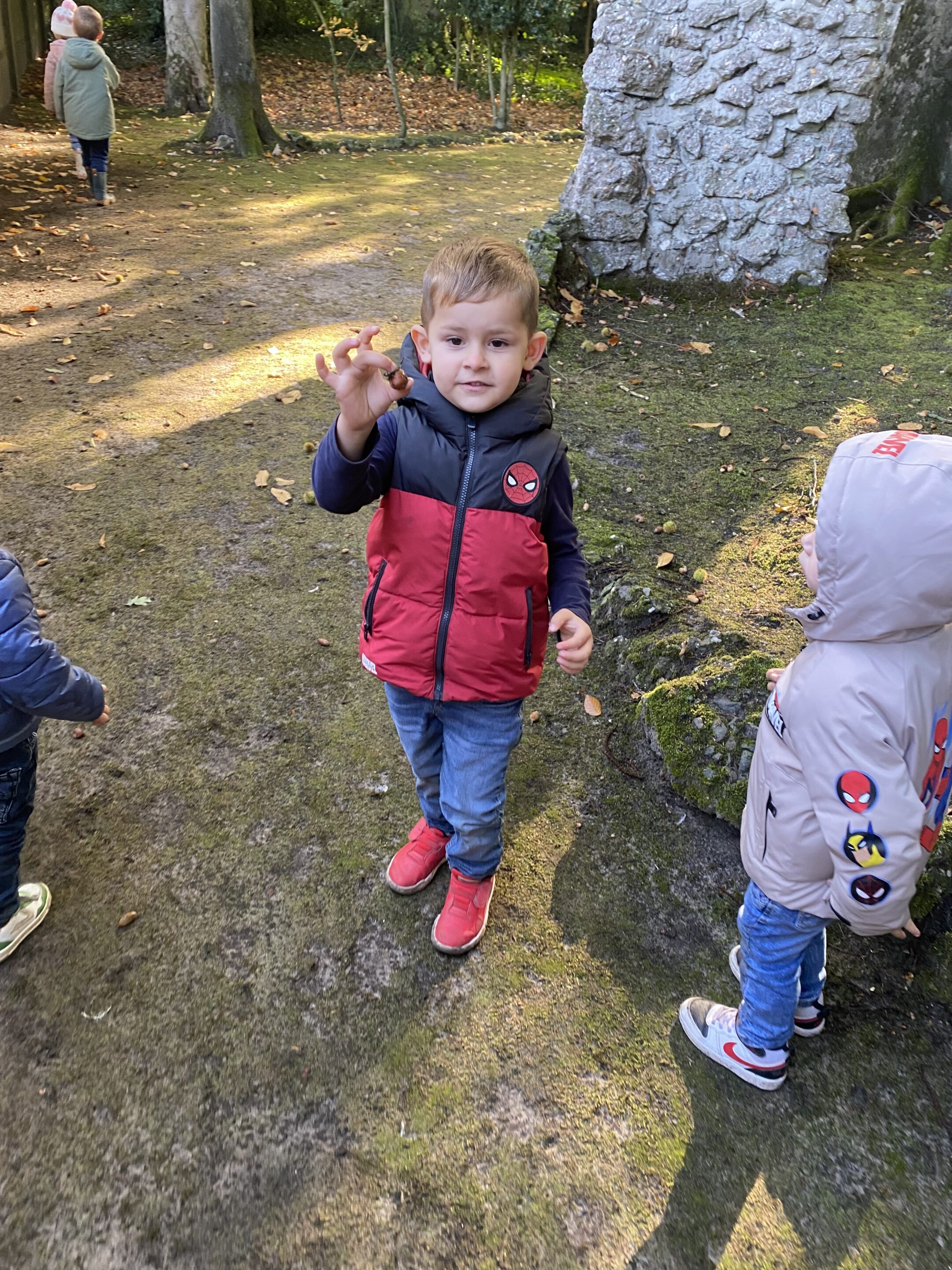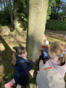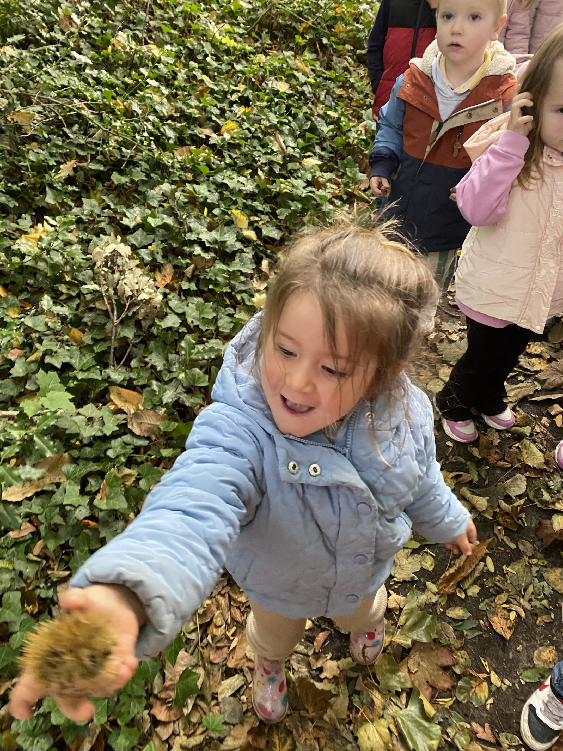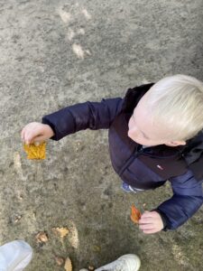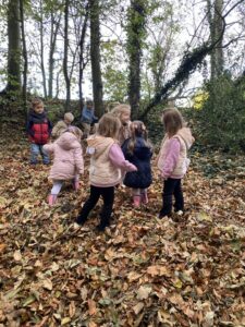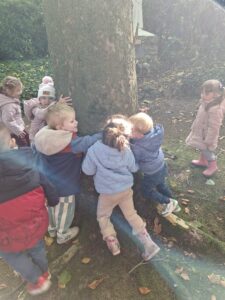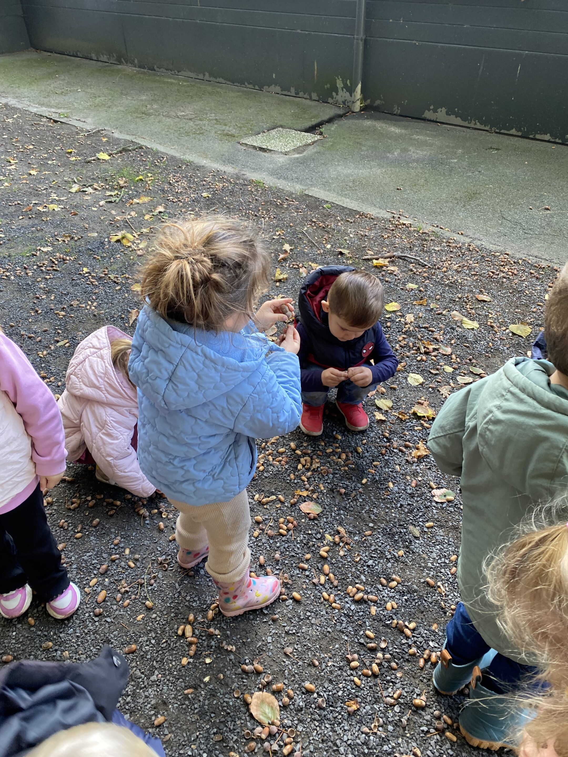 Op donderdagvoormiddag gingen we als start van ons thema: ‘herfstschatten in het bos’ op pad voor een boswandeling. We verzamelden heel wat herfstvruchten zoals kastanjes, eikels, bolsters, beukennapjes, … We sprongen in de blaadjes en gooiden ze in de lucht. We knuffelden de bomen en vergeleken de stammen met elkaar. Wat een mooie voormiddag!
