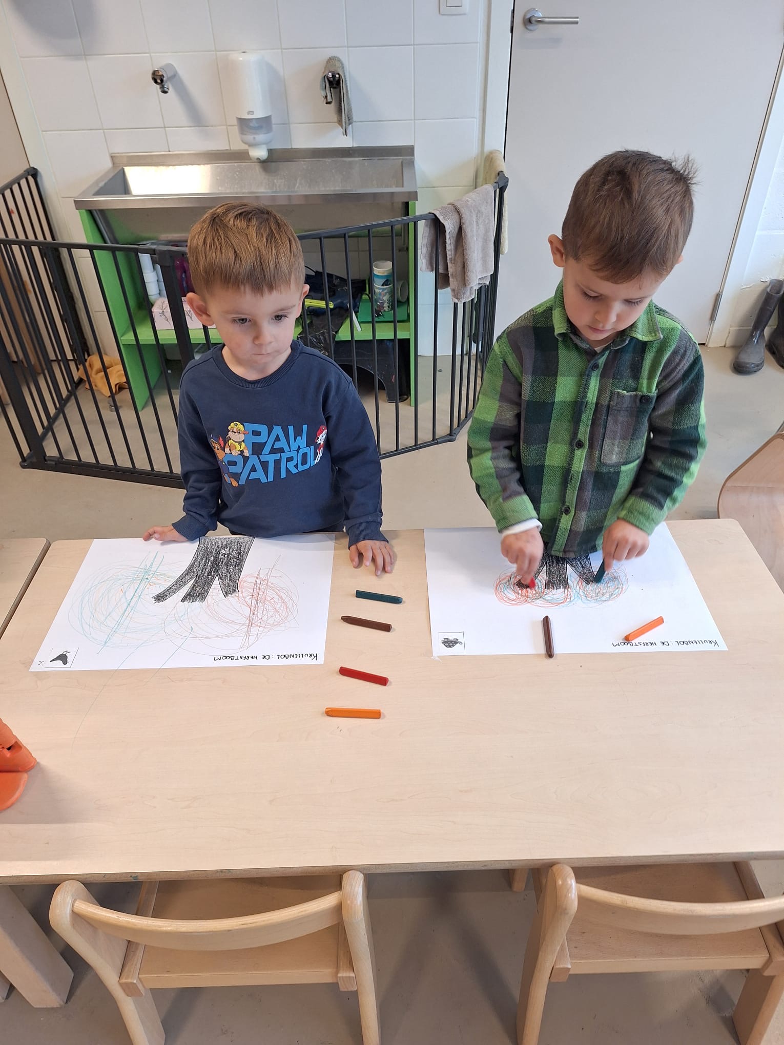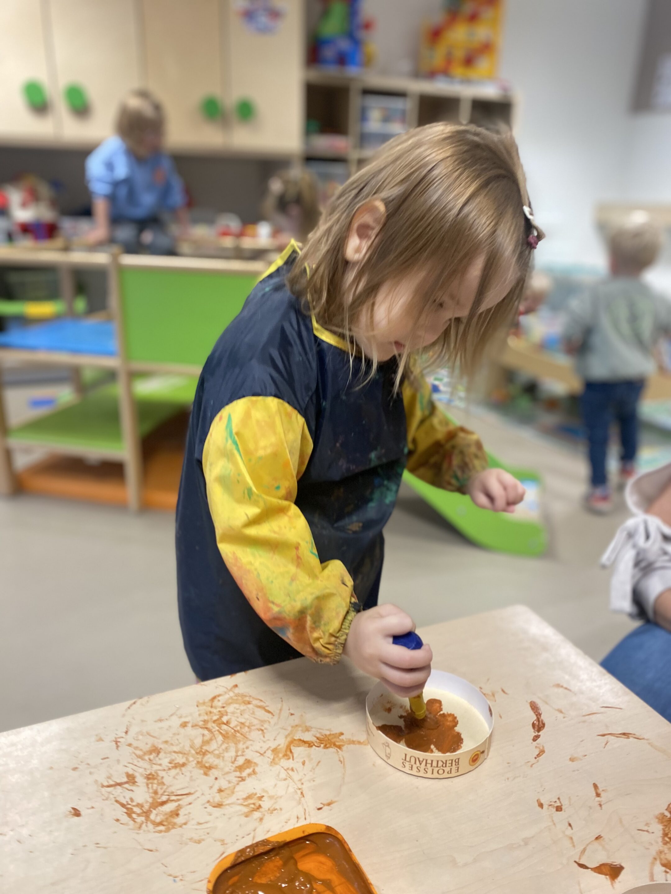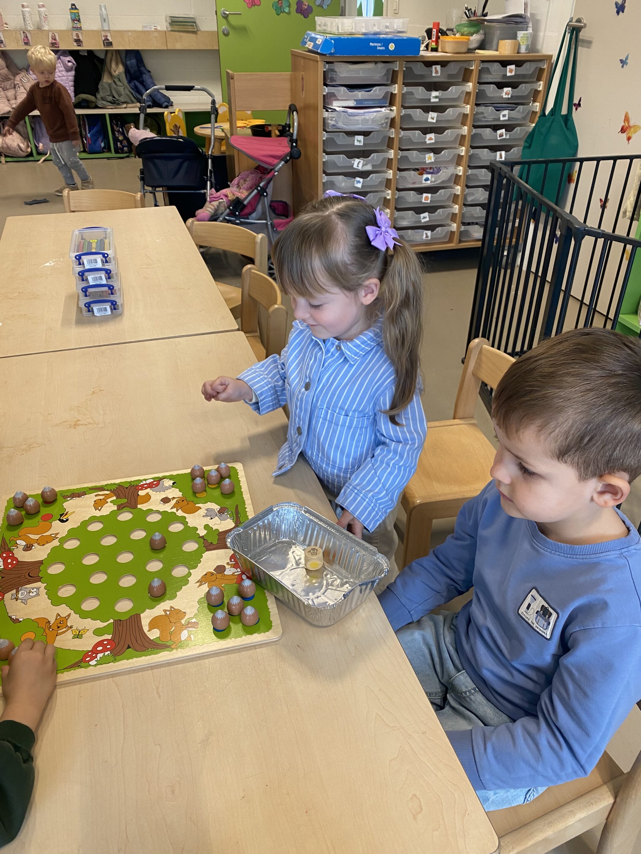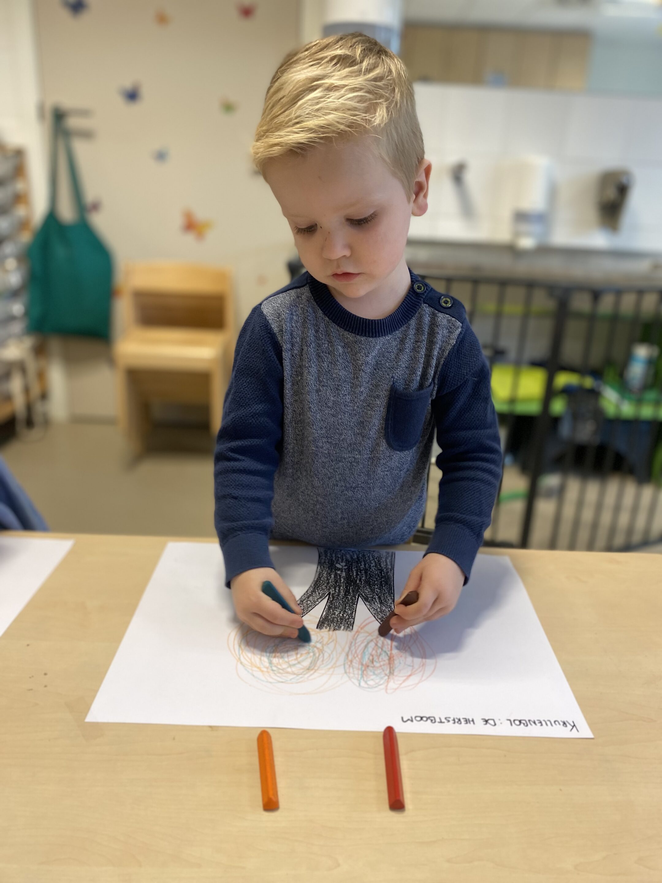 Donderdag gingen we van start met ons nieuwe thema: Herfstschatten in het bos. We begonnen met een boswandeling, waarbij we samen op zoek gingen naar herfstvruchten en genoten van de prachtige herfstkleuren. Terug in de klas gingen we creatief aan de slag: we onderzochten, sorteerden en benoemden de gevonden herfstvruchten zoals eikels, kastanjes en bolsters. Ook werkten we rond de kleuren van de herfst: rood, oranje, geel en bruin. We kleurden, knutselden en ontdekten zo al spelend al het mooie van de herfst.