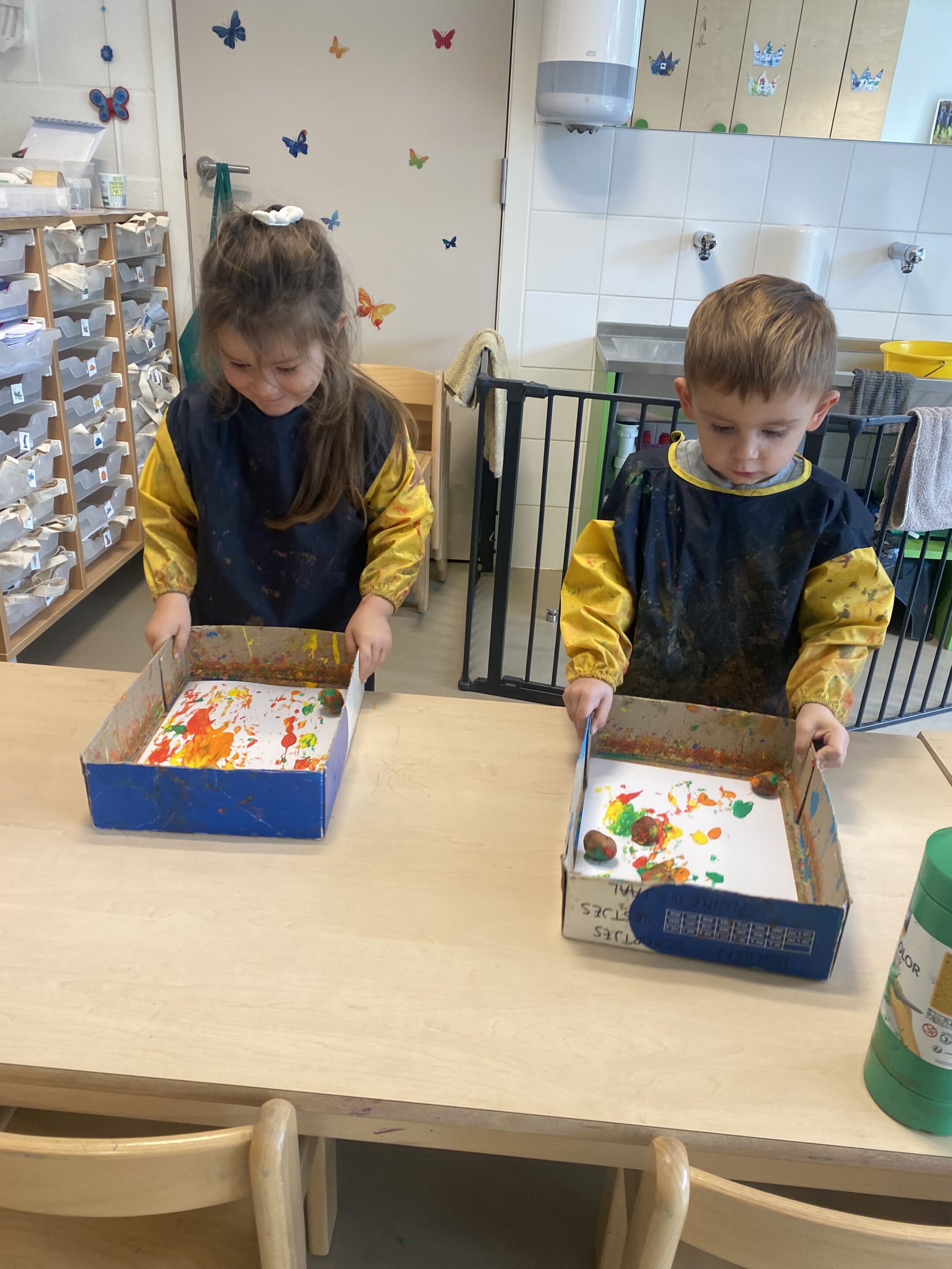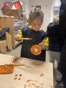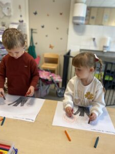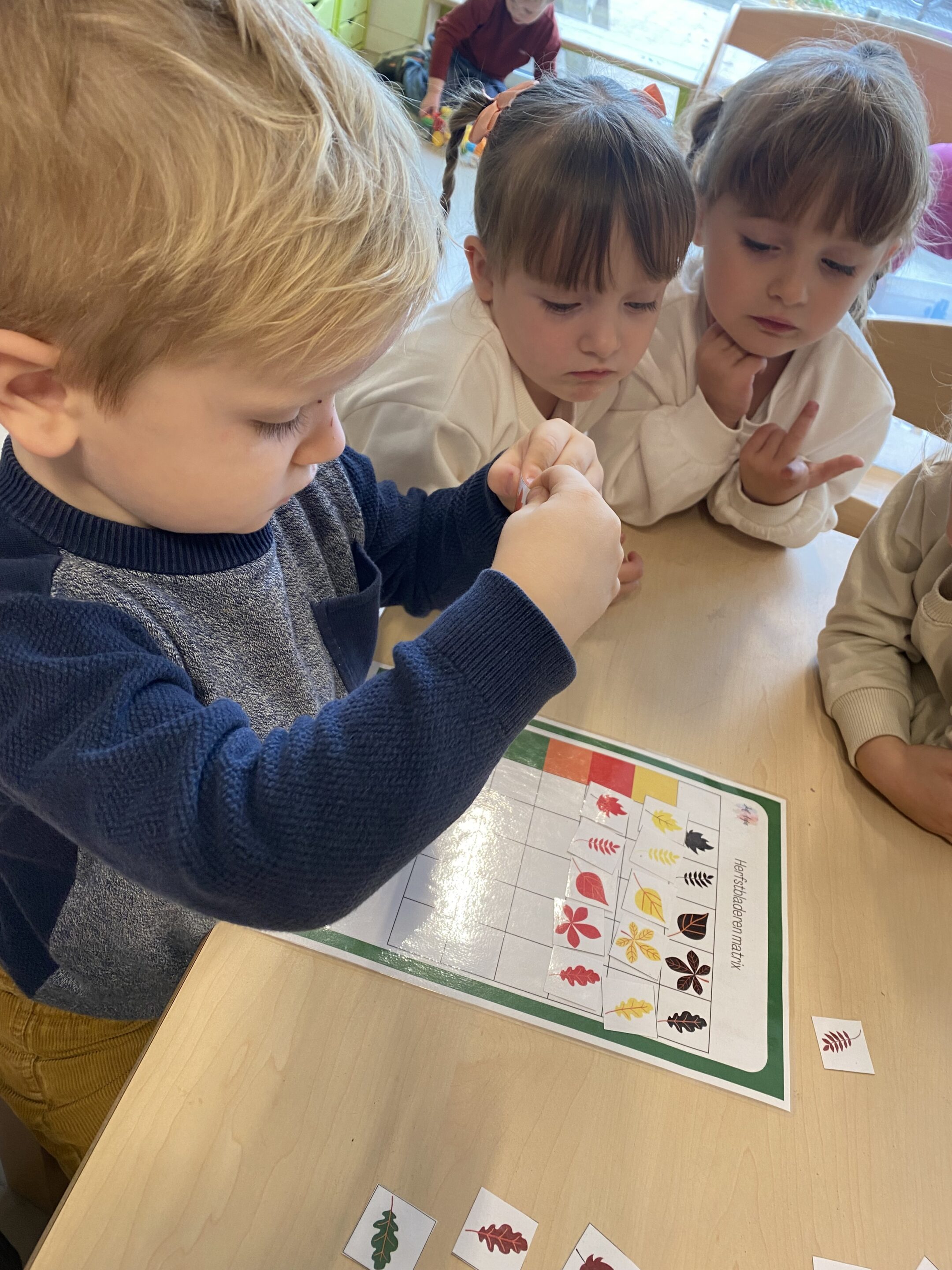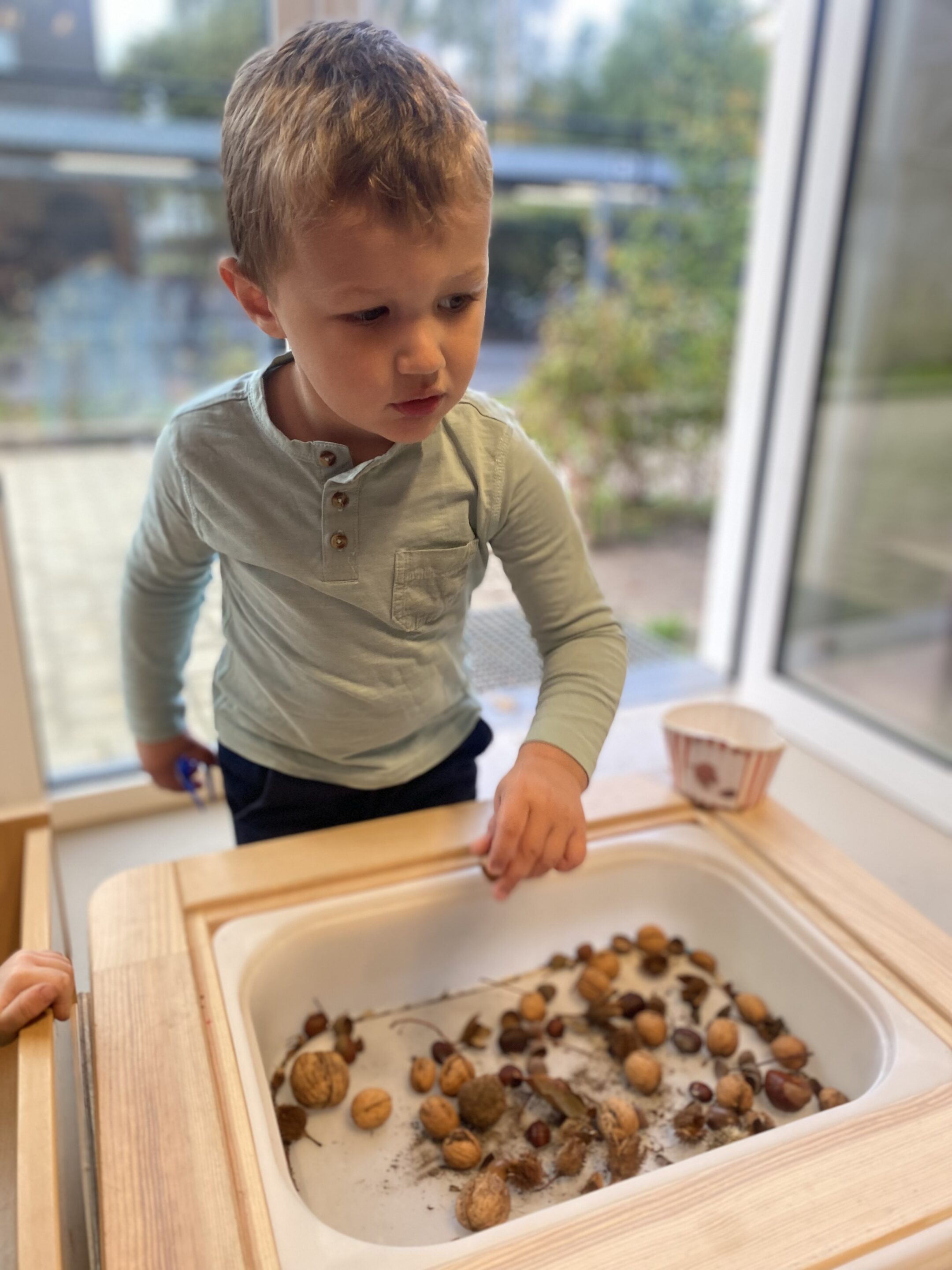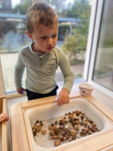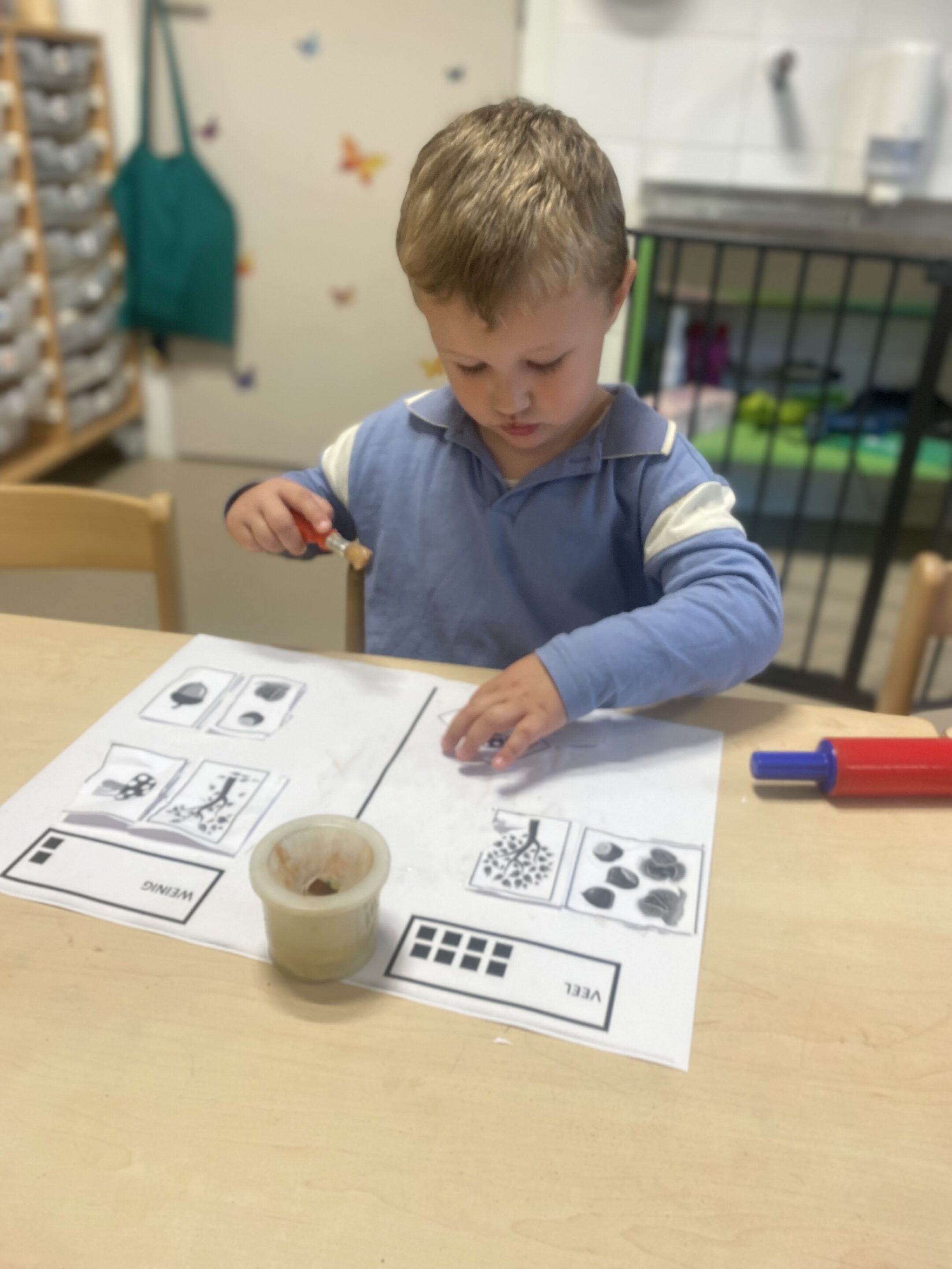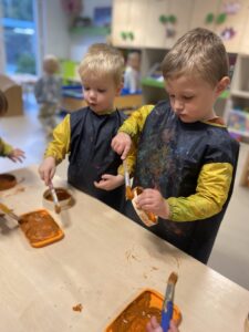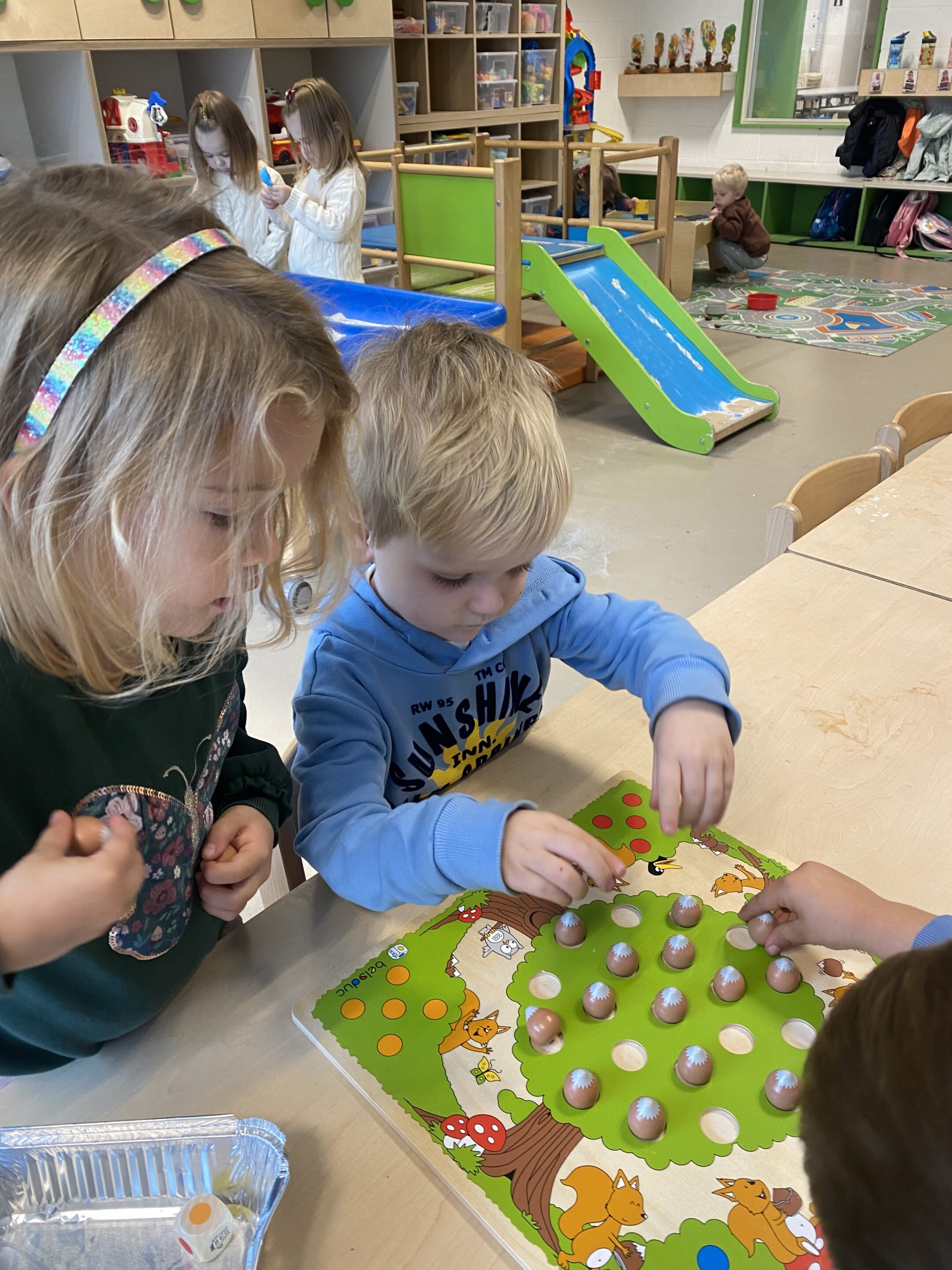 Donderdag gingen we van start met ons nieuwe thema: Herfstschatten in het bos. We begonnen met een boswandeling, waarbij we samen op zoek gingen naar herfstvruchten en genoten van de prachtige herfstkleuren. Terug in de klas gingen we creatief aan de slag: we onderzochten, sorteerden en benoemden de gevonden herfstvruchten zoals eikels, kastanjes en bolsters. Ook werkten we rond de kleuren van de herfst: rood, oranje, geel en bruin. We kleurden, knutselden en ontdekten zo al spelend al het mooie van de herfst.