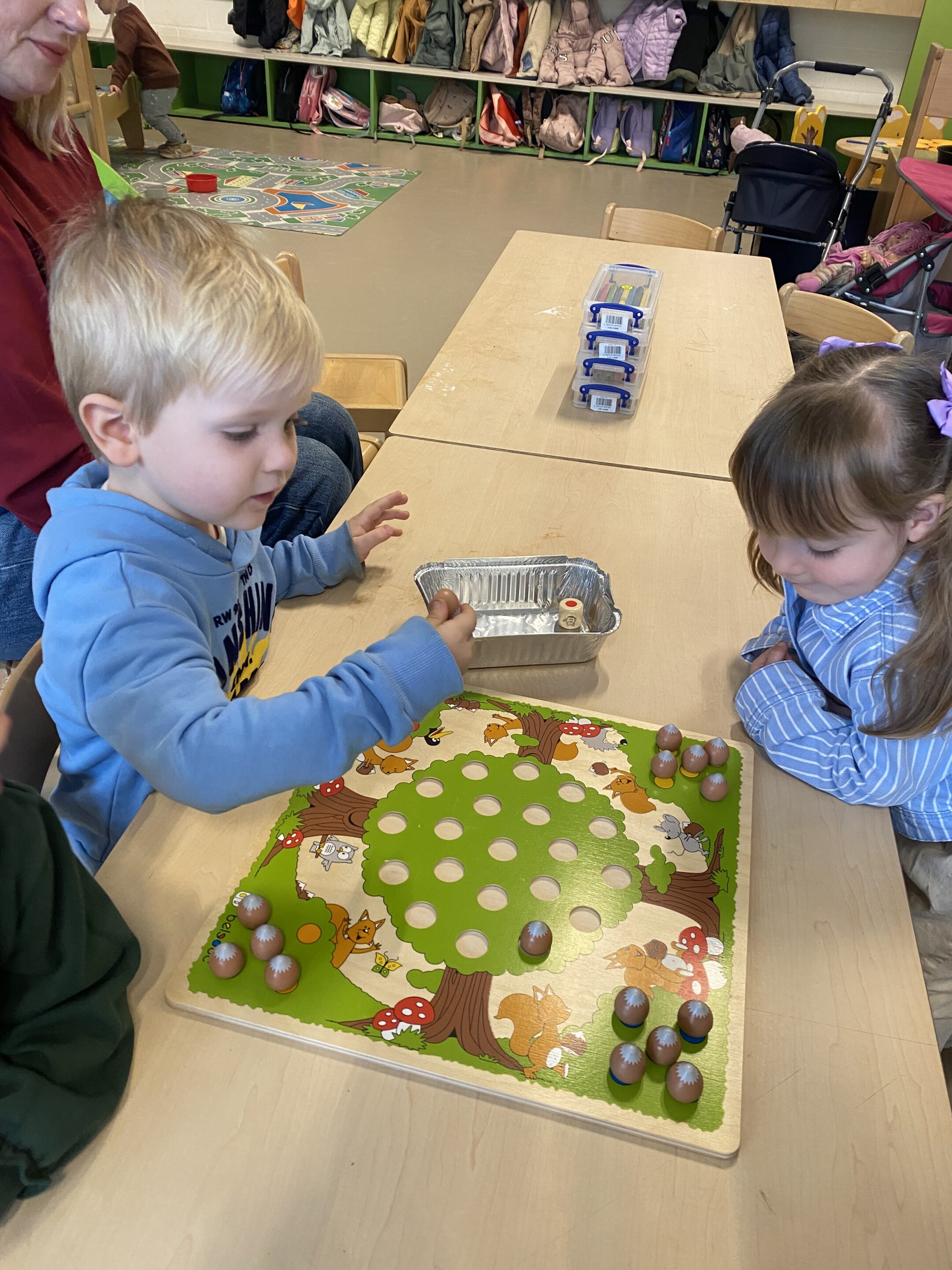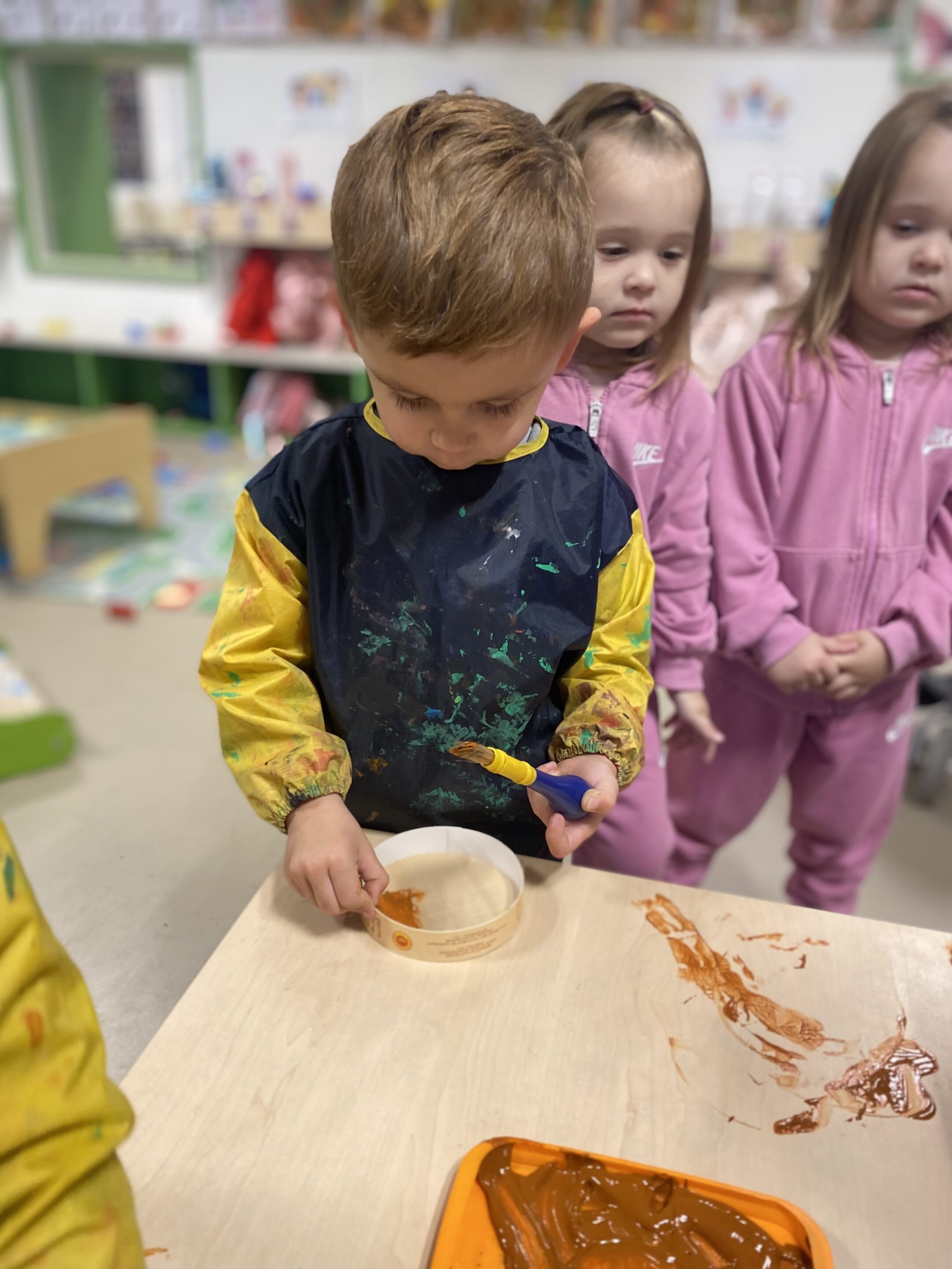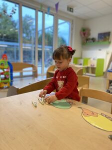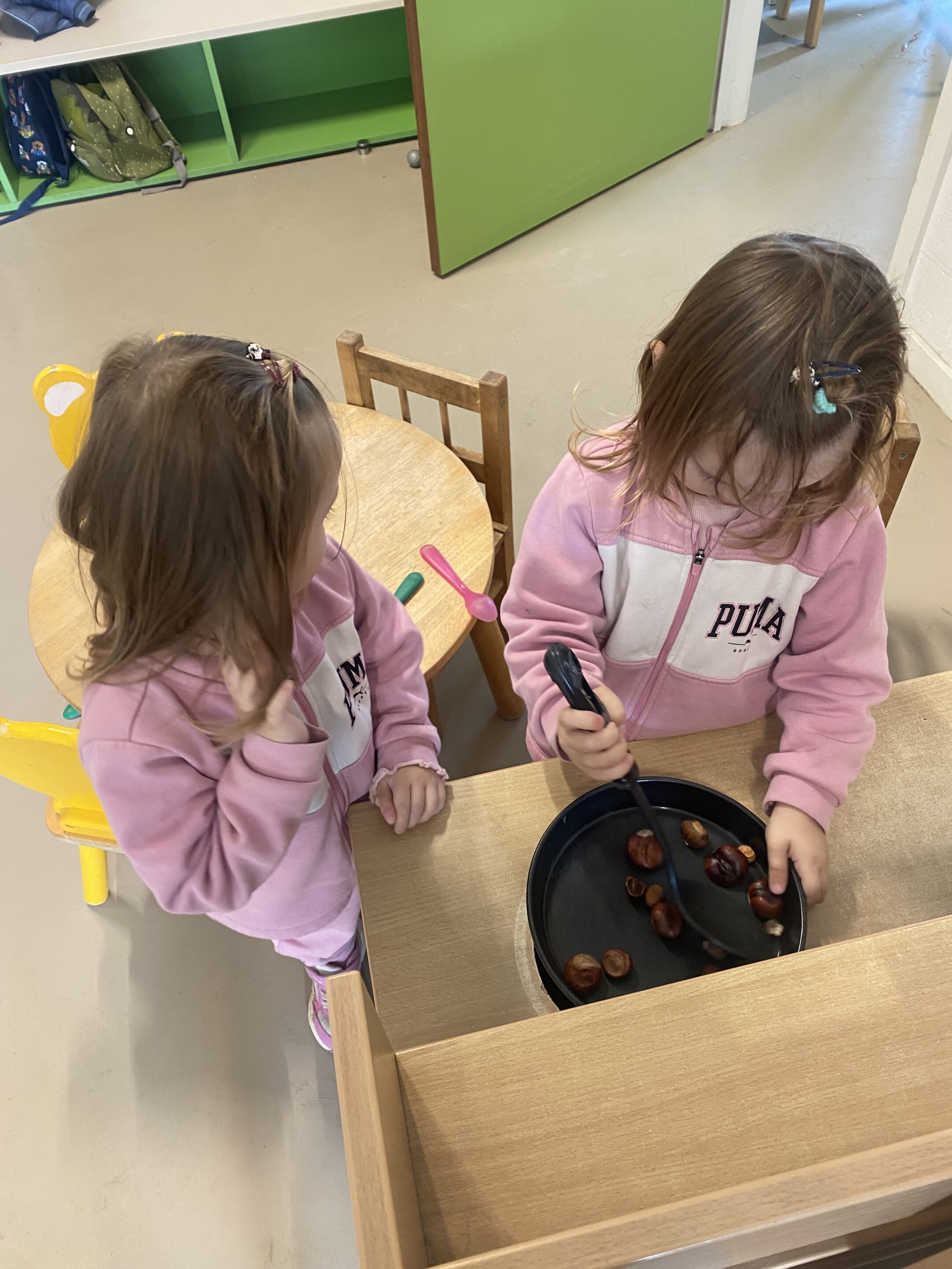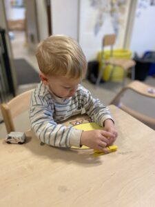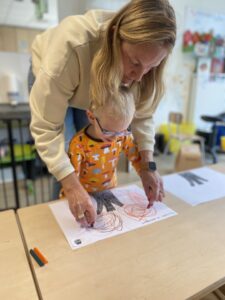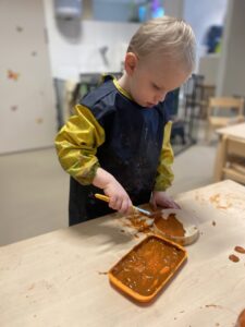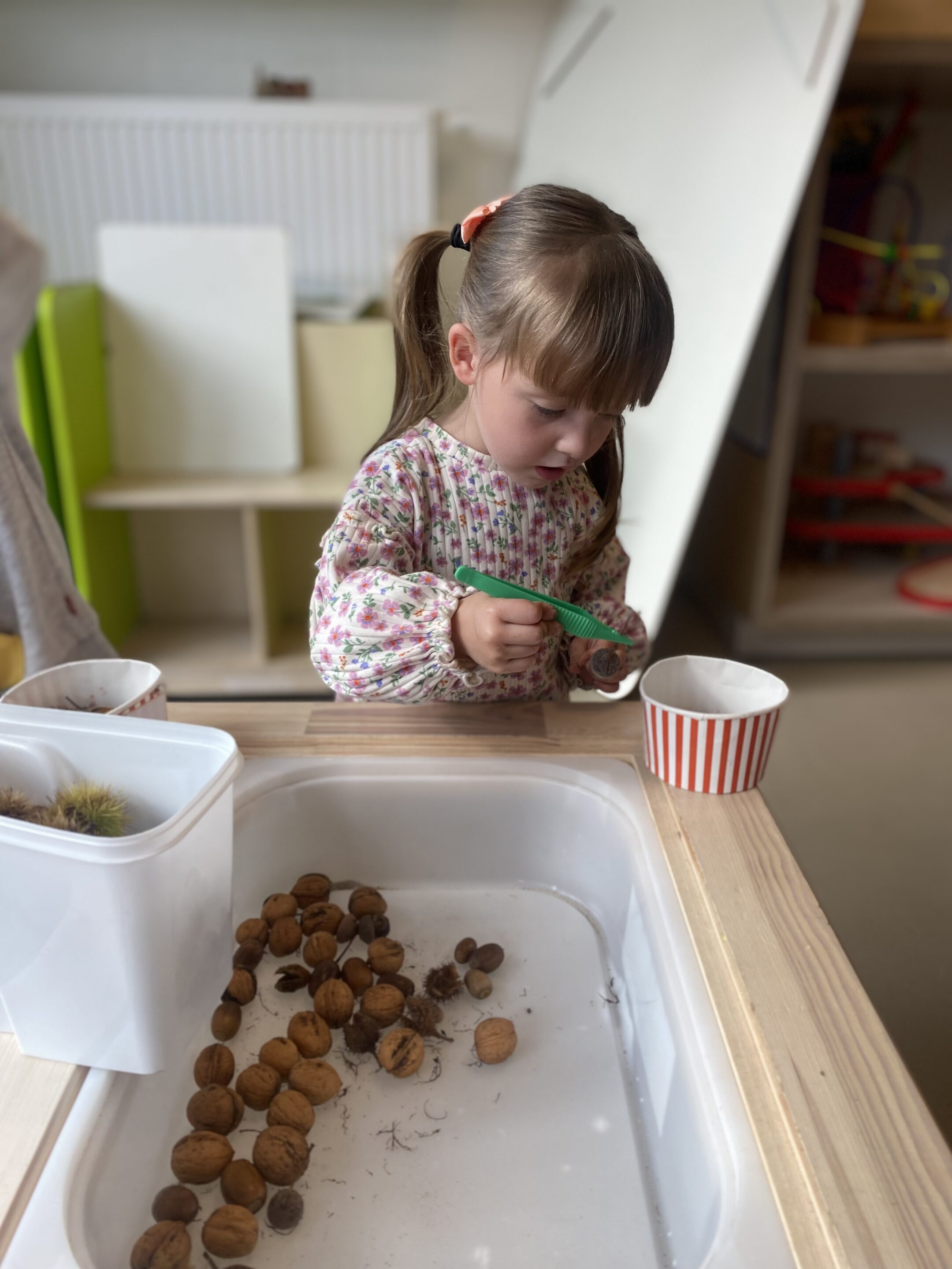 Donderdag gingen we van start met ons nieuwe thema: Herfstschatten in het bos. We begonnen met een boswandeling, waarbij we samen op zoek gingen naar herfstvruchten en genoten van de prachtige herfstkleuren. Terug in de klas gingen we creatief aan de slag: we onderzochten, sorteerden en benoemden de gevonden herfstvruchten zoals eikels, kastanjes en bolsters. Ook werkten we rond de kleuren van de herfst: rood, oranje, geel en bruin. We kleurden, knutselden en ontdekten zo al spelend al het mooie van de herfst.