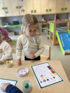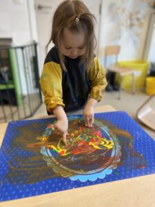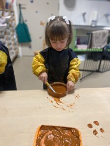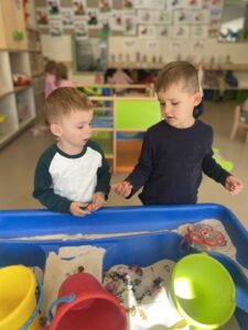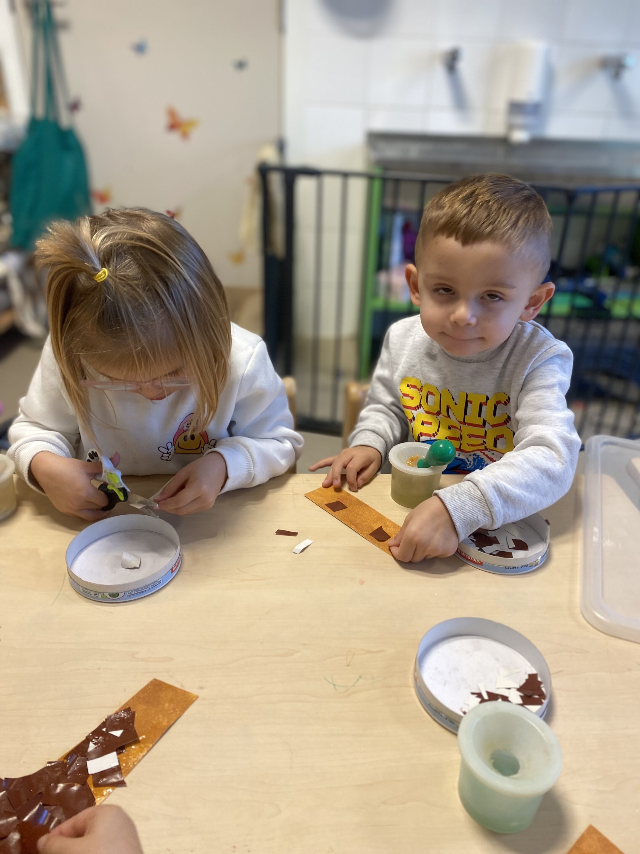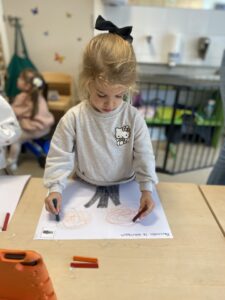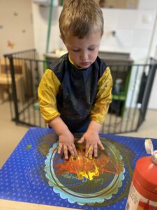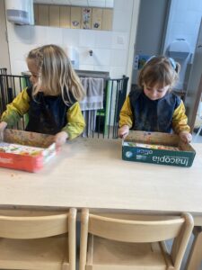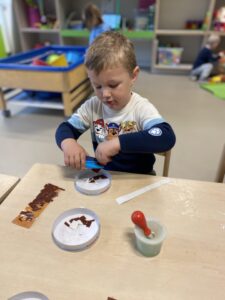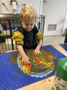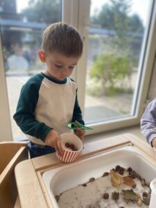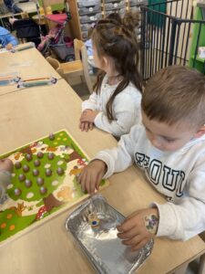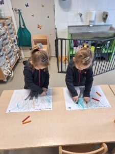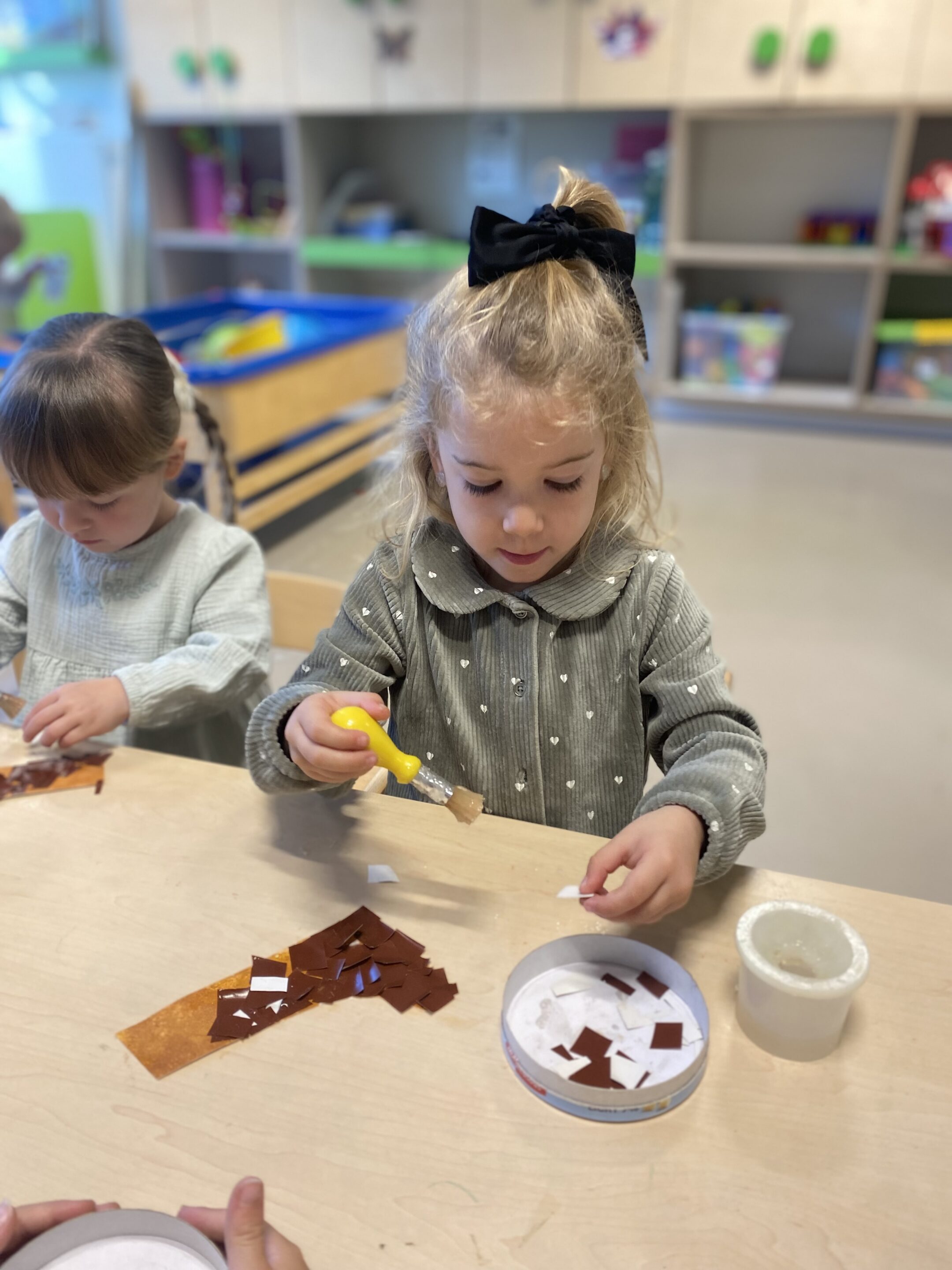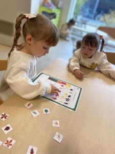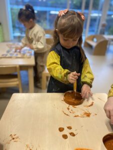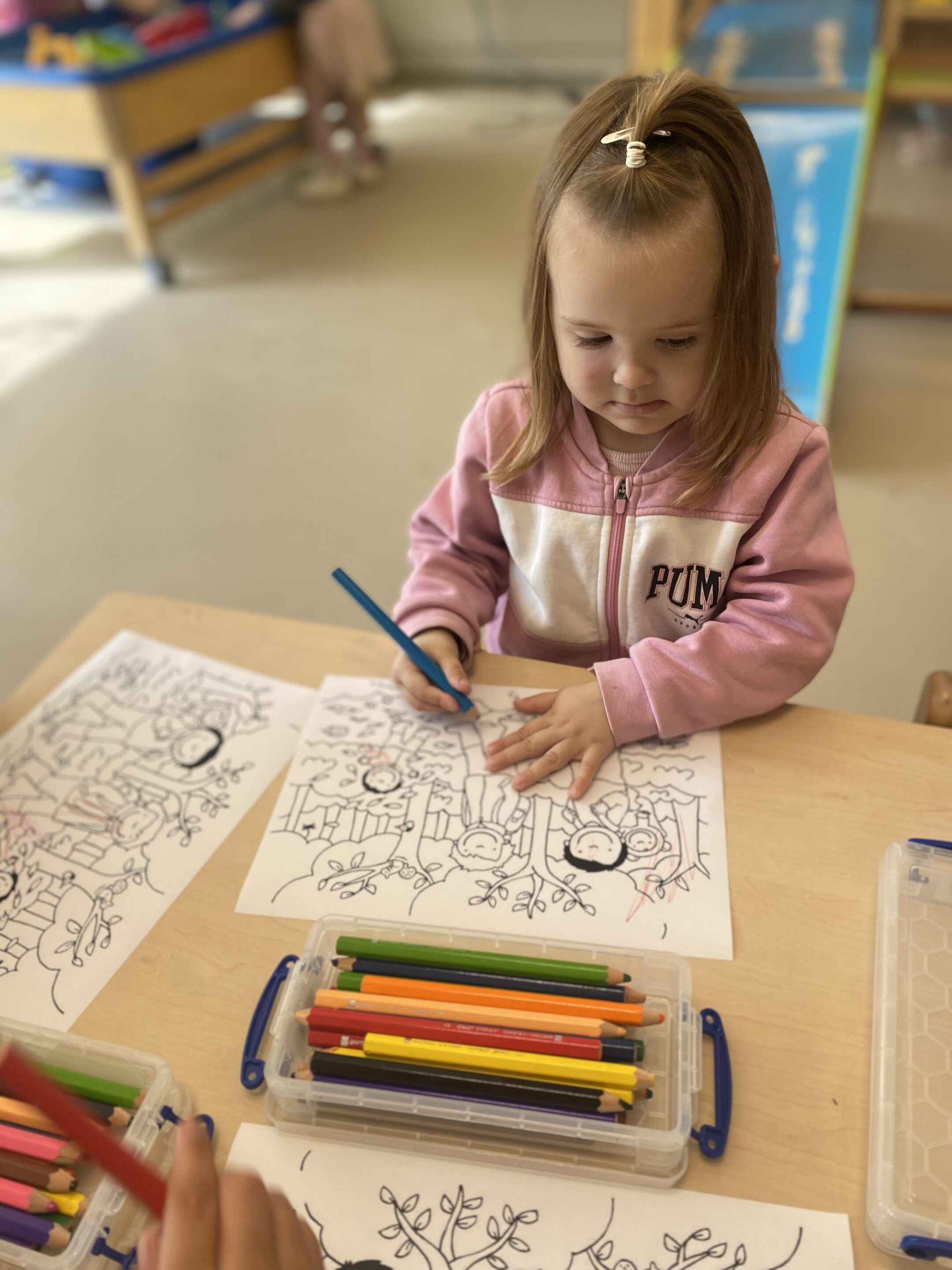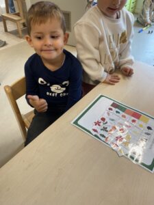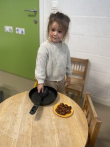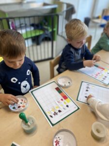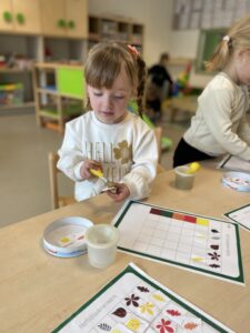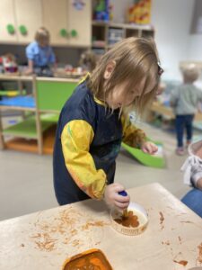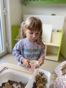 Donderdag gingen we van start met ons nieuwe thema: Herfstschatten in het bos. We begonnen met een boswandeling, waarbij we samen op zoek gingen naar herfstvruchten en genoten van de prachtige herfstkleuren. Terug in de klas gingen we creatief aan de slag: we onderzochten, sorteerden en benoemden de gevonden herfstvruchten zoals eikels, kastanjes en bolsters. Ook werkten we rond de kleuren van de herfst: rood, oranje, geel en bruin. We kleurden, knutselden en ontdekten zo al spelend al het mooie van de herfst.
