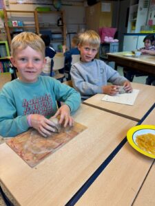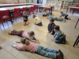 Op dinsdag gingen we voor het eerst een activiteit doen met het tweede leerjaar. De juffen en meester werkten elk een activiteit uit en we mochten zelf kiezen waar we aansloten. Bij juf Jolien leerden we alles over winterslaap en winterrust en de egel, als afsluiting boetseerden de kinderen een egeltje. Bij juf Lisa trokken we er op uit en speelden we een bingo in het bos en ontdekten we allerlei geheimen van de natuur. Bij juf Kim lazen we in het boek ‘Ik zie jou!’, we werden echte kriebeldieren en sloten af met yoga. Bij meester Maxim leerden we over nachtdieren en in het bijzonder over de uil.