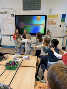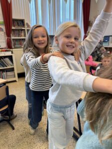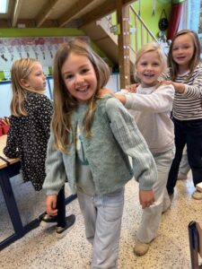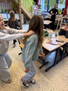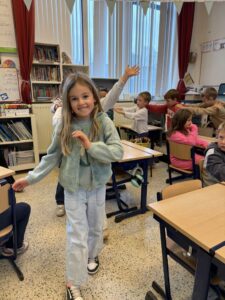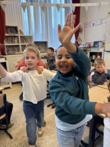 Ondertussen kunnen wij al vier hoofdletters schrijven: N, M, U en IJ. We oefenen telkens grootmotorisch alvorens we onze beste schrijfkunsten in ons schriftboekje laten zien.
