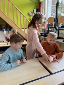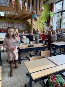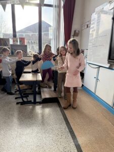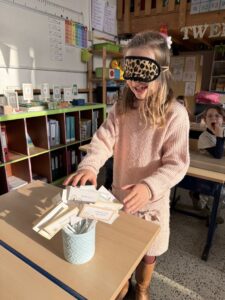 In een meetcircuit gingen we aan het werk met de natuurlijke maateenheden: 1 liter, 1 meter, 1 kilogram. We moesten heel goed samenwerken om de opdracht juist uit te voeren. Ook leerden we heel goed schatten en op voorhand nadenken over ons resultaat.