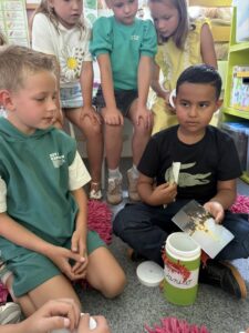 We maakten vandaag heel wat tijd vrij om te vertellen aan de hand van onze terugblikdoos. In deze ’terugblik’ stopten we tijdens de zomervakantie heel veel leuke herinneringen. De leerlingen genoten ervan om hun verhalen te vertellen en hun verzamelde spulletjes aan elkaar voor te stellen.