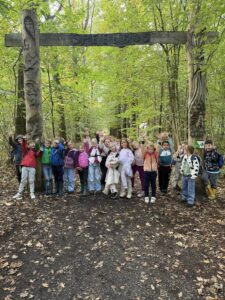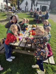 Het eerste en tweede leerjaar gingen op donderdag 9 oktober onder een stralende herfstzon naar het Drongengoed voor een leerrijke en speelse bosuitstap! Bedankt aan opa Marcel (papa juf Mieke De Baets en opa juf Celine) om zoals steeds heel wat uitleg over de jacht te geven. Bedankt aan Marieke (mama Jolien L6) om als natuurgids met ons op pad te willen gaan en ons uitleg te geven over de verschillende soorten bomen en hun bladeren. Bedankt aan alle ouders en grootouders om ons te vergezellen tijdens deze dag en ons veilig naar en van het bos te brengen met de wagen of met de fiets. Wij hebben echt genoten van onze herfstuitstap dankzij jullie allen!