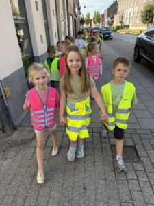 We konden vandaag onze fietsvaardigheden oefenen op een heel leuk parcours op de site van de groenblauwe parels. Na de voormiddagspeeltijd gingen we op stap met de kleuters van de derde kleuterklas en leerden we alle belangrijke en gevaarlijke punten in de schoolomgeving kennen. Van een leuke een leerrijke strapdag gesproken!