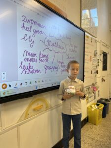 We vierden de verjaardag van Mathieu en Sherine in de klas. We gaven ze leuke complimentjes en ze trakteerden met cupcakes en taart. Fijne verjaardag!