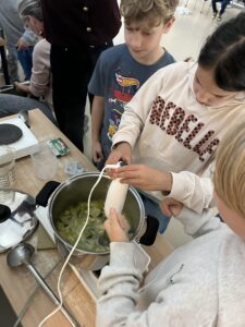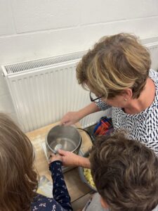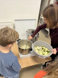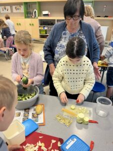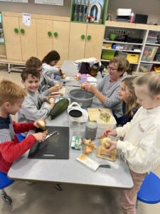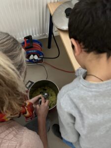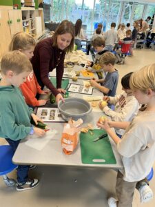 Op donderdag 23 oktober maakten de leerlingen van L3 samen soep. Met behulp van 2 mama’s en 2 oma’s, gingen we aan de slag in 4 kleine groepjes. Terwijl de soep aan het pruttelen was, konden de kinderen een film kijken. Achteraf maakten we het gezellig en dronken we samen van onze soep. De leerlingen deden ook een portie mee naar huis. Een geslaagde STEM-activiteit om ons WO-thema over de herfst af te sluiten. Nogmaals dankjewel voor alle helpende handen!