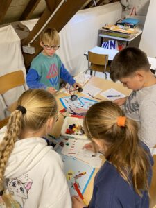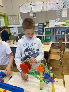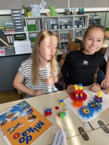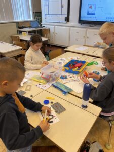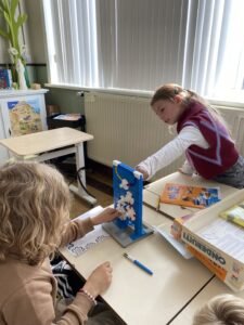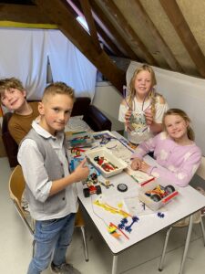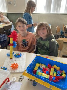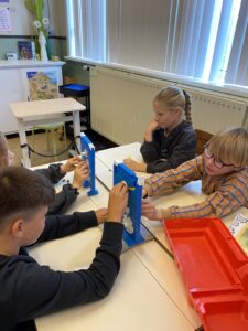 Voor de lessen wereldoriëntatie over het werken van tandwielen, gingen de leerlingen aan de slag in verschillende hoeken met tandwielen.